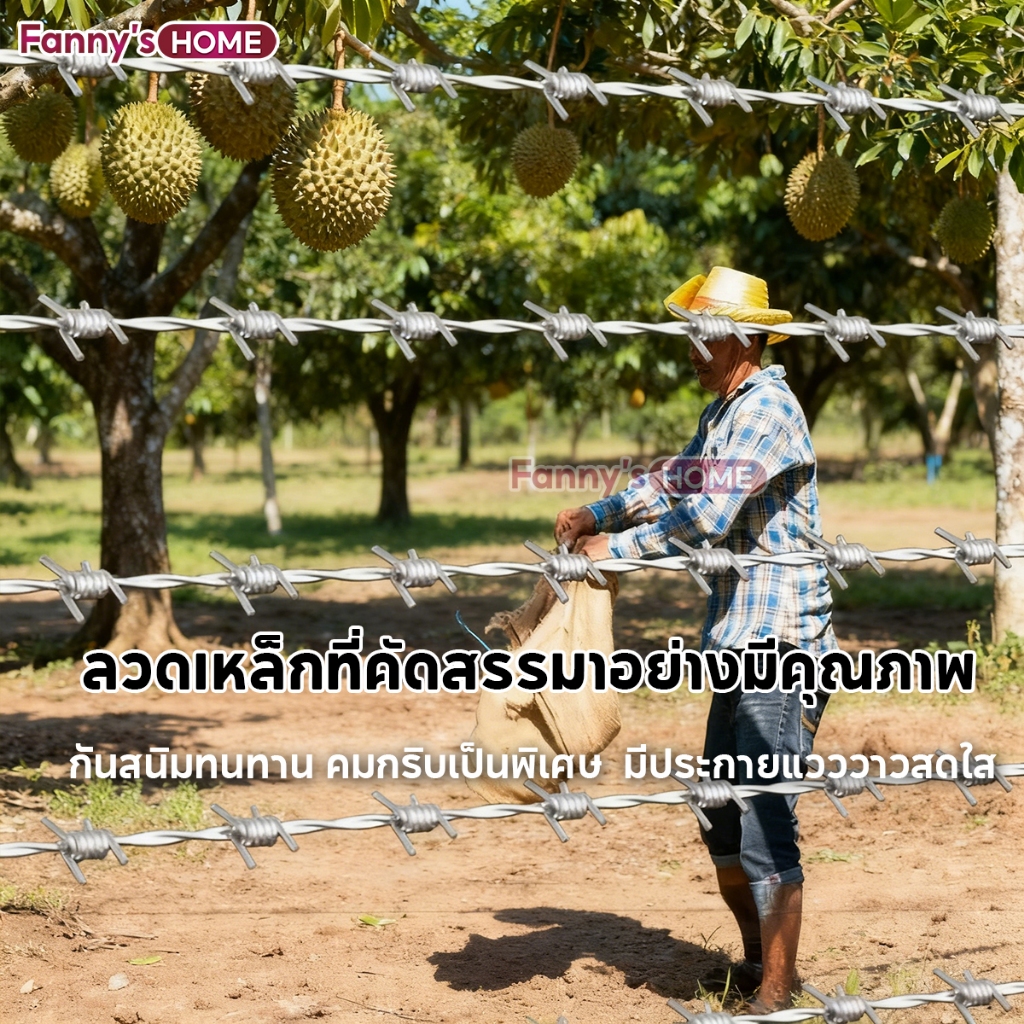 ลวดหนามชุบกัลวาไนซ์ ลวดหนาม (ยาว60-100เมตร) ลวด 2มิล1.7มิล 1.4มิล ปมเชือก 5 รอบ หนาแน่น กันสนิมทนทาน คมกริบ ใช้ได้นาน