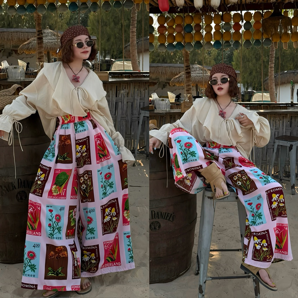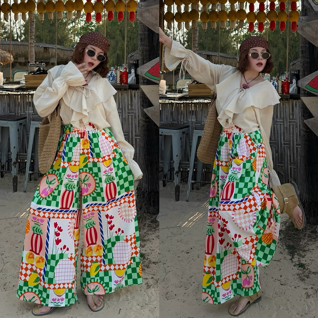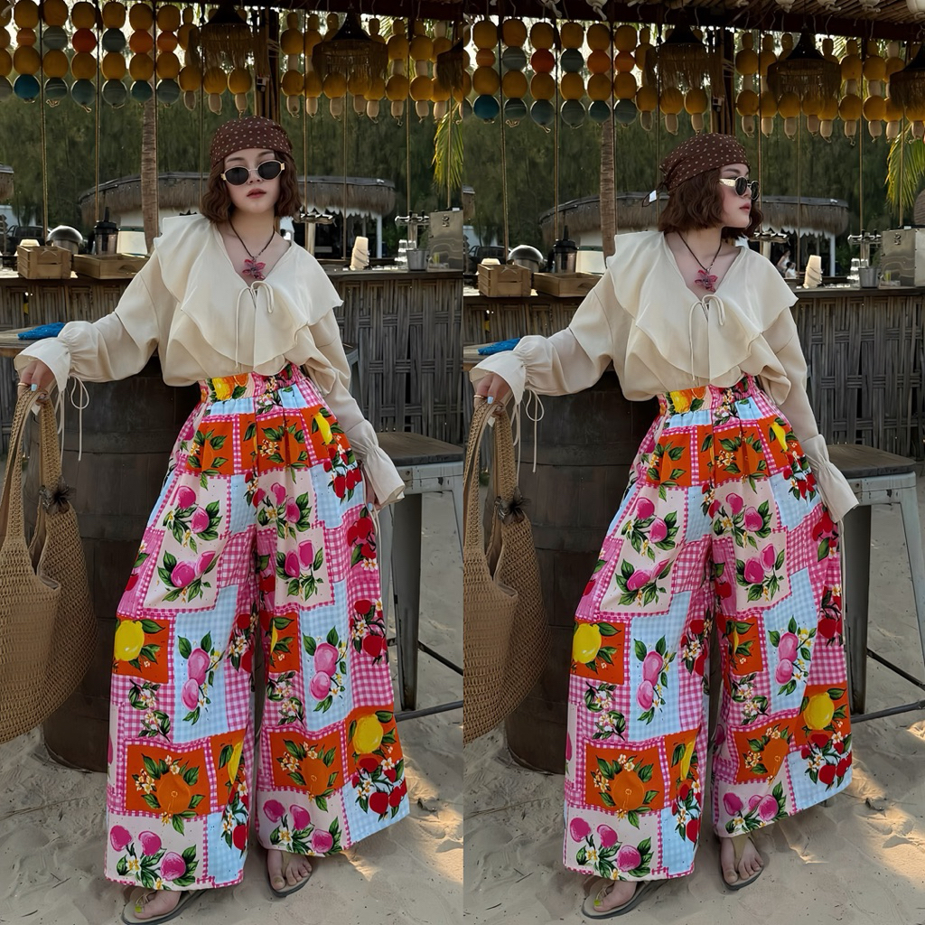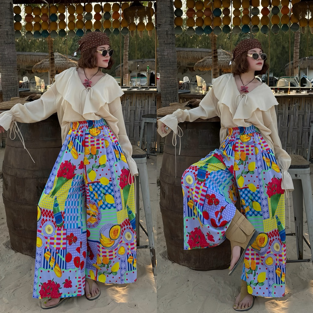กางเกงกระโปรง Summer ผ้าไหมญี่ปุ่นพิมพ์ลาย เอว 24-38 ผ้าใส่สบาย ไม่ร้อน