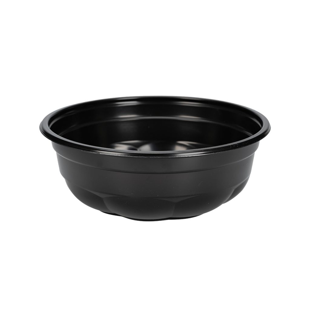 [แพ็ค25ชุด] ชุดชามพลาสติก เข้าไมโครเวฟ สีดำ 750ml. พร้อมฝาใส PET ชามซากุระ ราคาโรงงาน Greenpacks