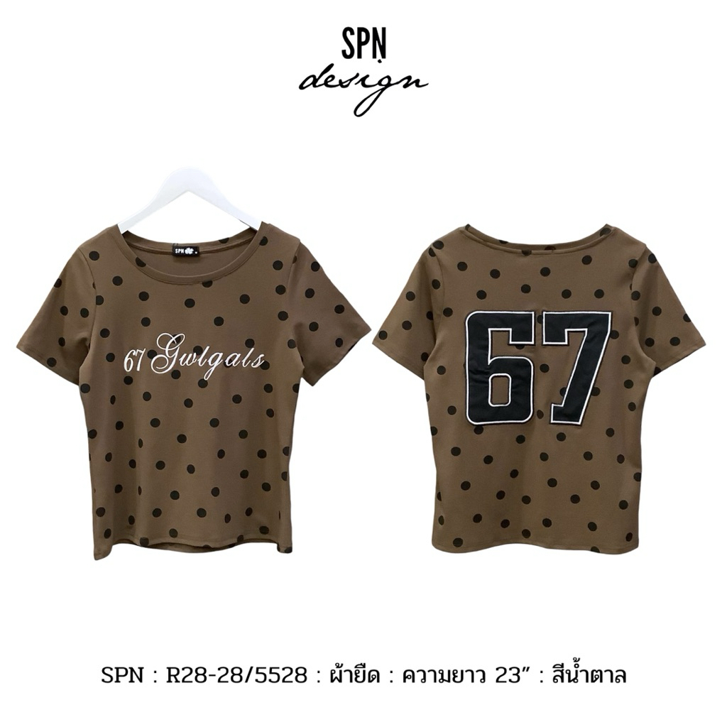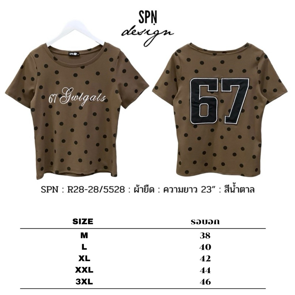 SPN R28-28 เสื้อผ้ายืดคอกลม ลายจุดในตัว งานปัก ความยาว 23”