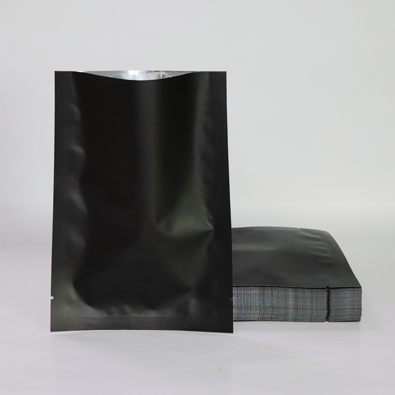 (แพ็ค 100 ใบ) ถุงฟอยล์ ซีลสามด้าน ก้นแบน สีดำด้าน #P206 ซองฟอยล์ สำหรับบรรจุอาหาร ขนม ถุงบรรจุภัณฑ์