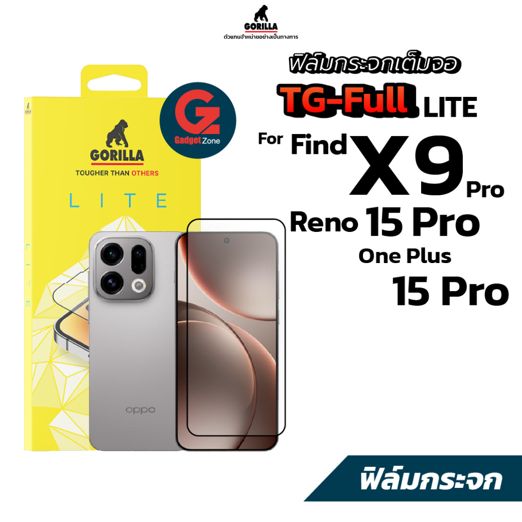 ฟิล์มกระจก Gorilla Lite TG-Full สำหรับ Oppo Find X9/X9 Pro I Reno 15 Pro I OnePlus 15 Pro (กระจกนิรภัยแบบเต็มจอ)