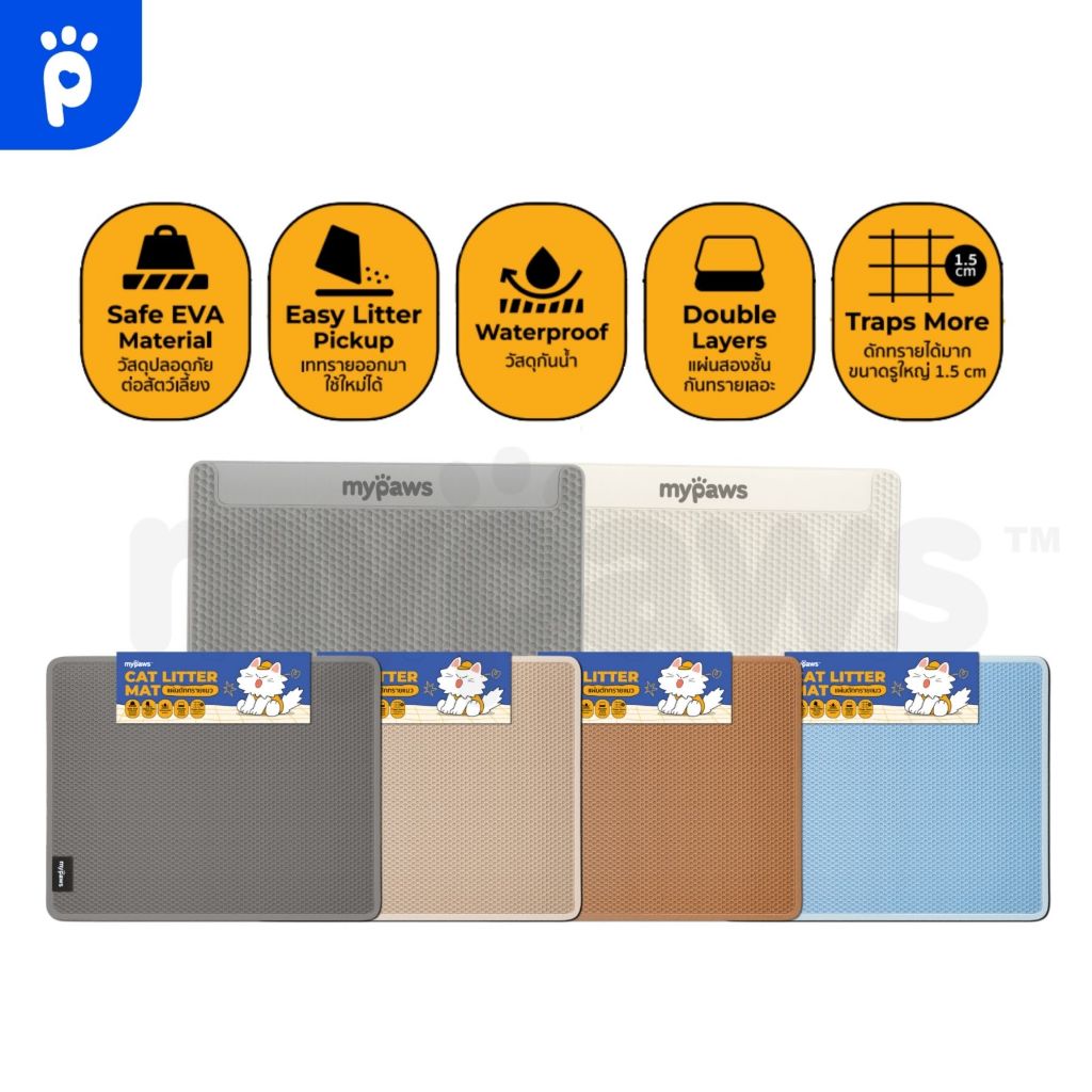 My Paws แผ่นดักทรายแมว 2 ชั้น ช่วยดักทรายแมวที่ติดเท้า ทำความสะอาดง่าย Cat litter Pad