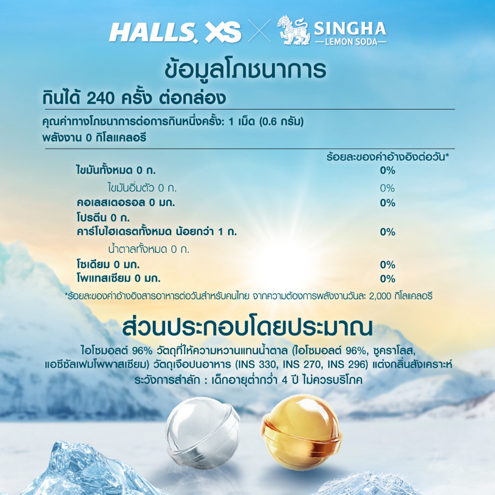 [เลือกรส] [แพ็ค 12 กล่อง] Halls XS Singha ฮอลล์ เอ็กซ์เอส สิงห์ 12g
