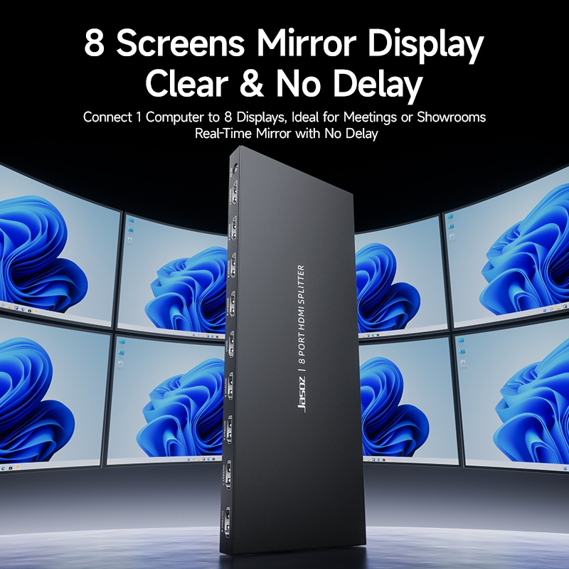Jasoz HDMI Splitter HDMI 2.0 4K Switcher 1 in 8 out 1x8 HDMI Splitter 8-Screen Display