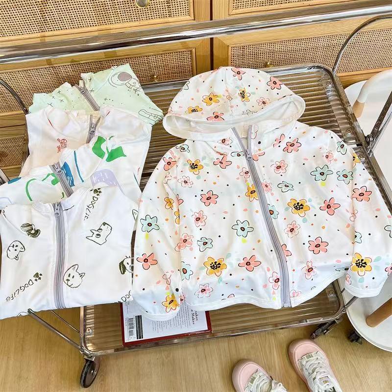 FS05 เสื้อแจ็คเก็ตกันแดด เสื้อโค้ทบางแขนยาว เหมาะสำหรับเด็กชายและเด็กหญิง ชุดกีฬาลำลองฤดูร้อน ระบายอากาศได้ดี