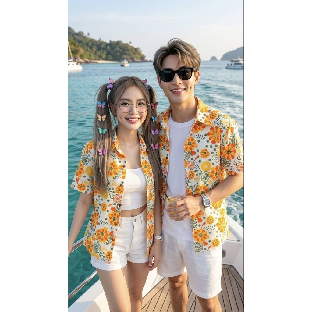 เสื้อคู่ลายดอกชาย-หญิงใส่สงกรานต์.