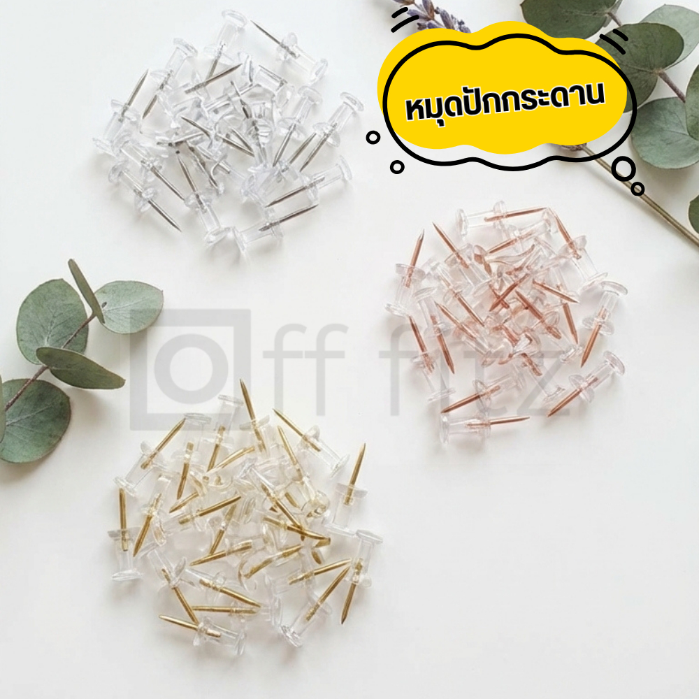 หมุดปักกระดานใส หมุดปักบอร์ดก้านสี เงิน/ทอง/โรสโกลด์ thumbtack หมุดปักไม้ก๊อก กล่อง20/50/100/200 ตัว
