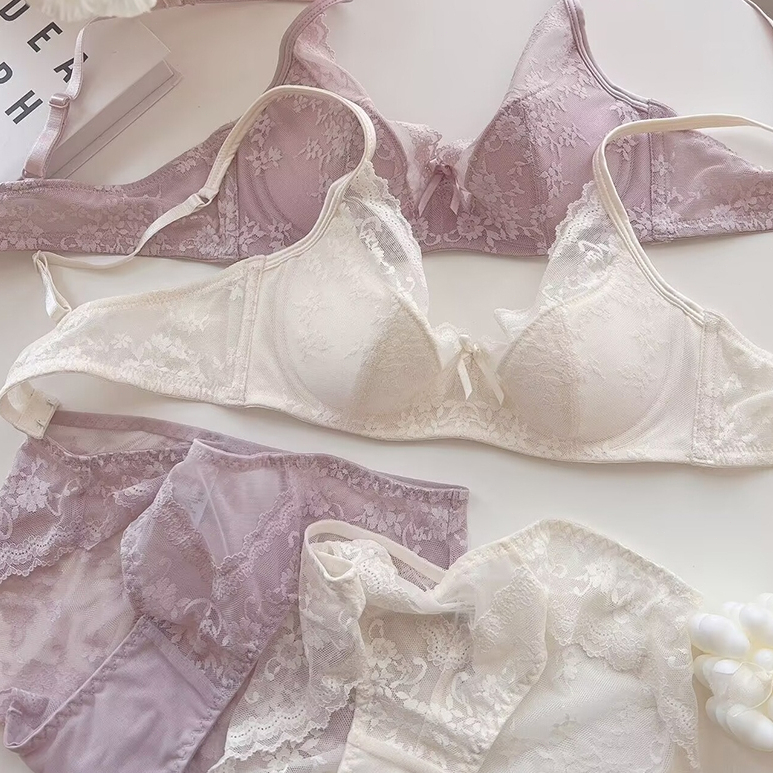 ชุดชั้นในลูกไม้แบบเซ็กซี่ ดันทรงและยกกระชับหน้าอกเล็ก ดีไซน์บางเฉียบ มีโครงเหล็กนุ่มช่วยยกกระชับและทำให้หน้าอกดูใหญ่ขึ้น