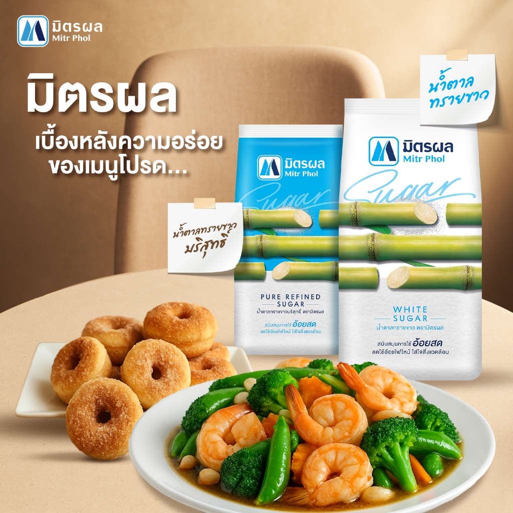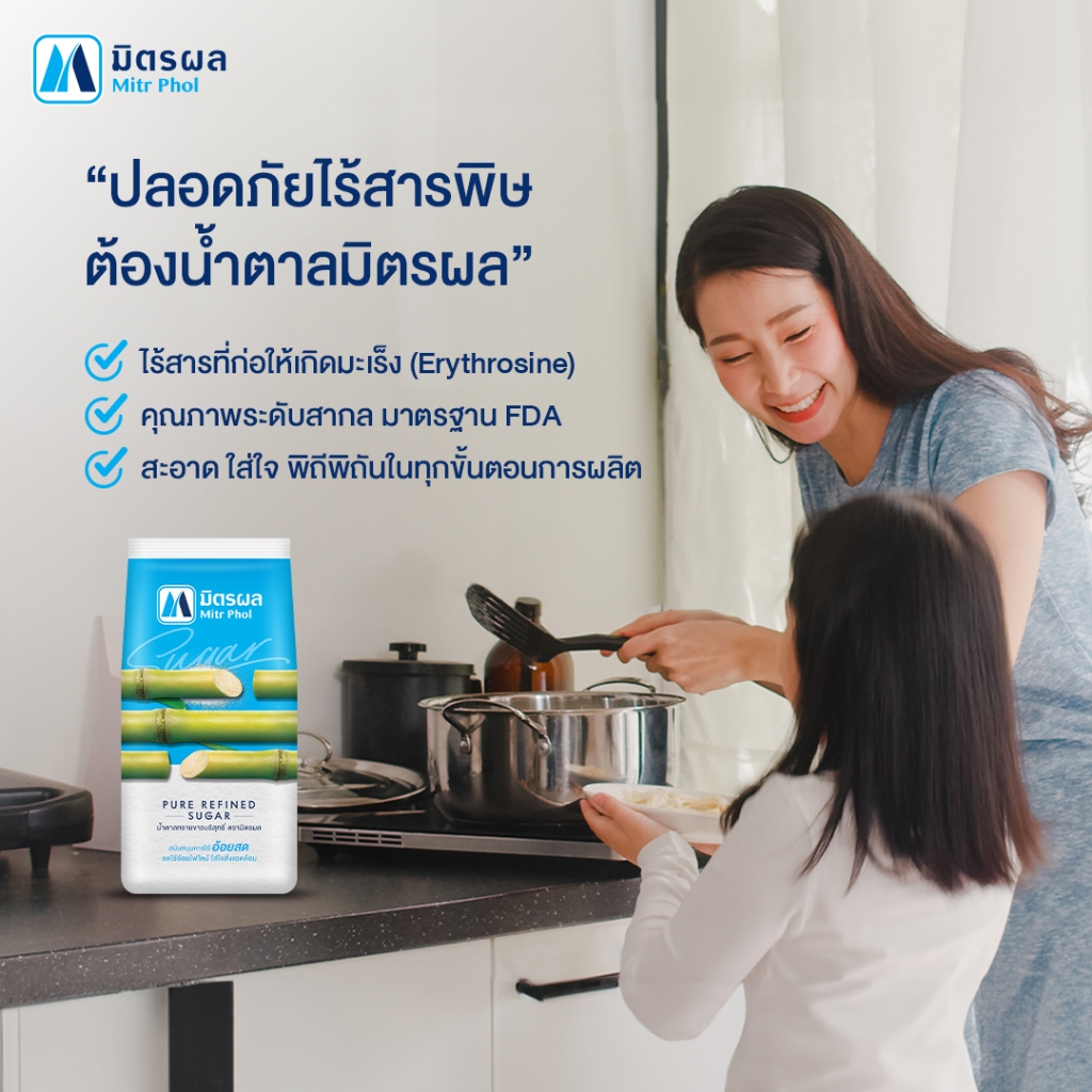 (ถุงเติม) น้ำตาลทรายขาว ตรามิตรผล / น้ำตาลทรายขาว น้ำตาลอ้อยธรรมชาติ ตราษฎา 1 กก. Mitr Phol / Sada Sugar 1 kg.