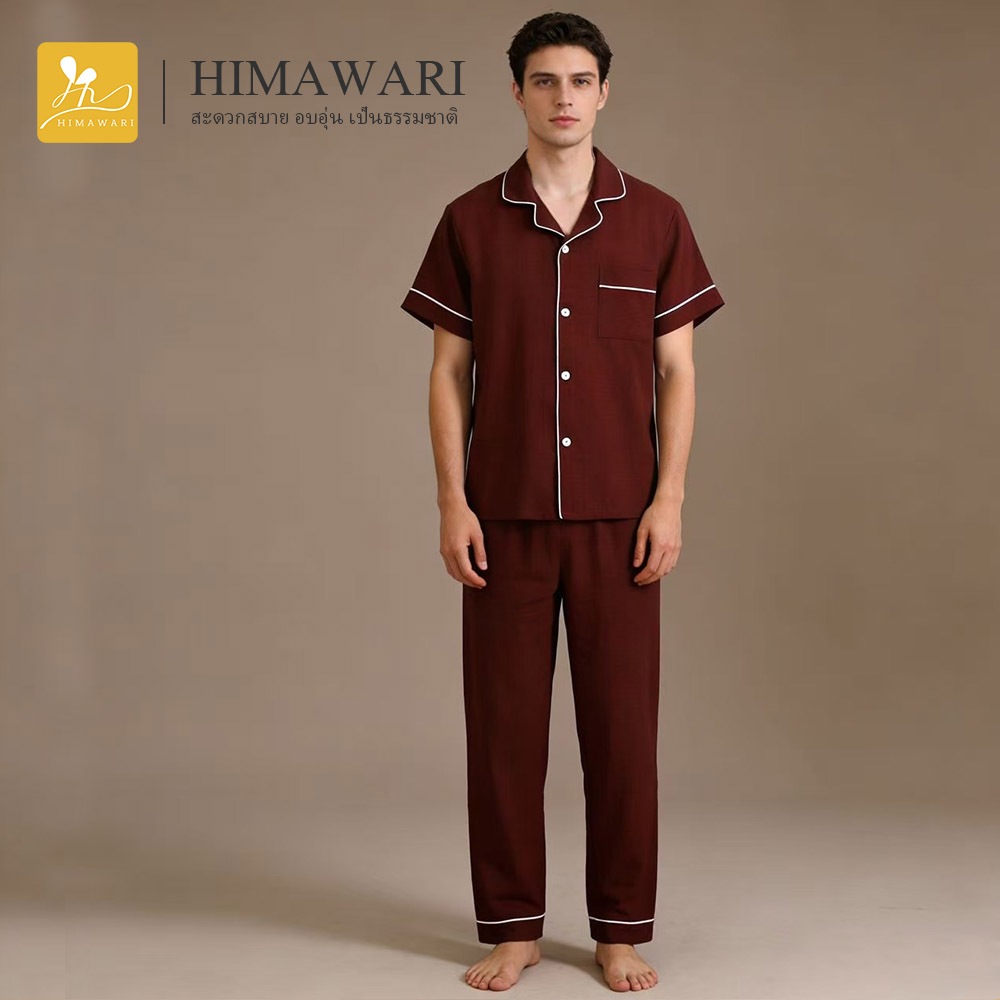 HIMAWARI丨ชุดนอนผู้ชาย ชุดนอนผ้าฝ้าย เเขนสั้น+ขายาว ใส่สบาย ไม่ร้อน ไม่อึดอัด Unisex