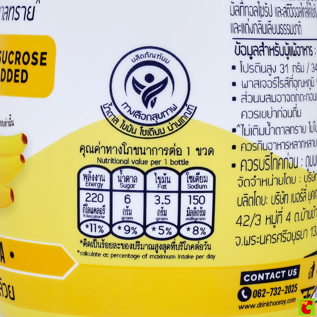 ฮูเร่ โปรตีน เชค นมโปรตีนสูตรเวย์ปราศจากน้ำตาลแลคโตส กลิ่นกล้วย 340 มล.