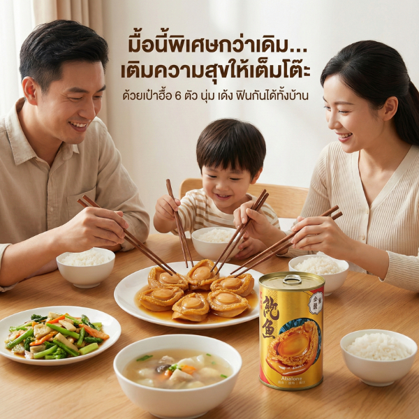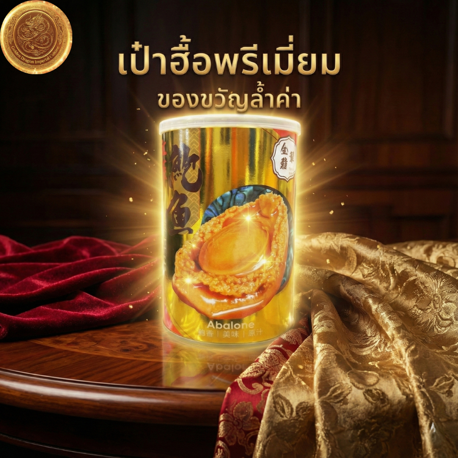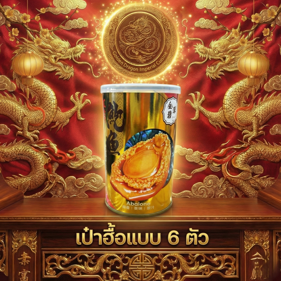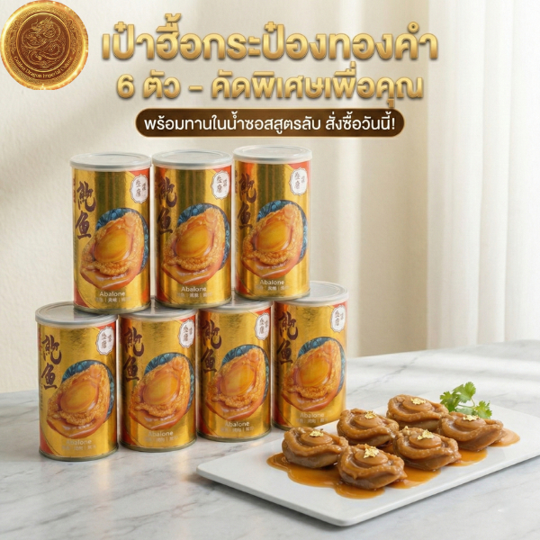 เป๋าฮื้อกระป๋องทอง (6 ตัว) Gold Jade เนื้อนุ่มเด้ง พร้อมทาน ซอสกลมกล่อมในน้ำแดง เกรดพรีเมียม