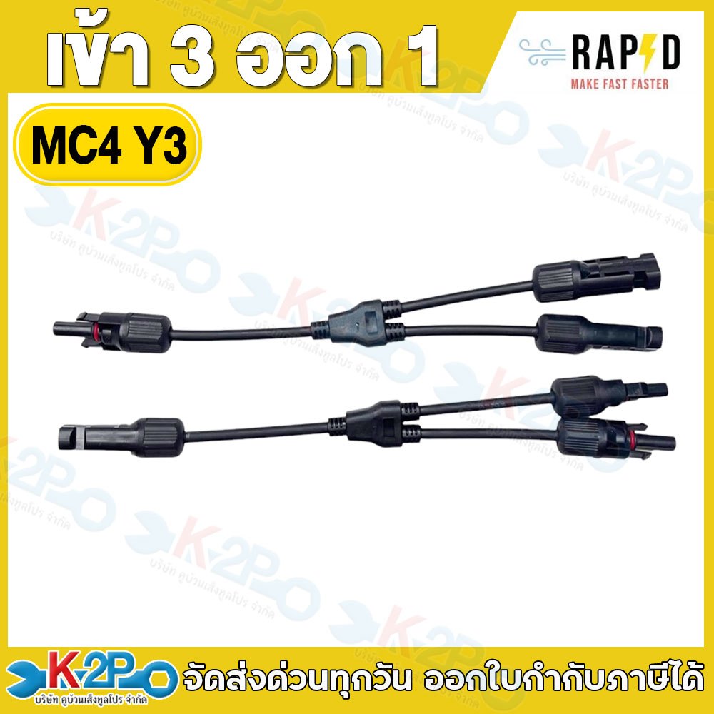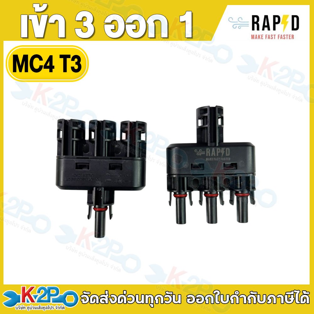 RAPD แจ็คต่อสายไฟ MC4 (PV-MC4) , ตัวต่อแยก 2 ออก 1 (MC4 T2) , ตัวต่อแยก 3 ออก 1 (MC4 T3) , เข้า 2 ออก 1 (MC4 Y2)