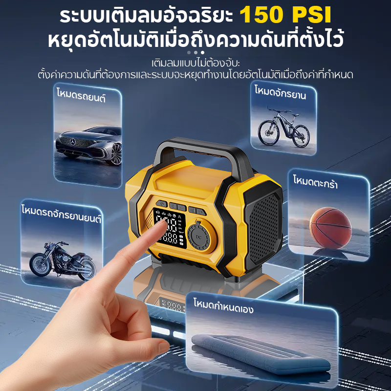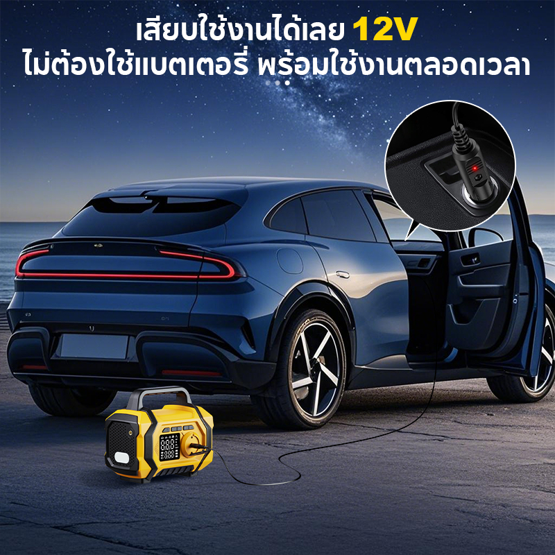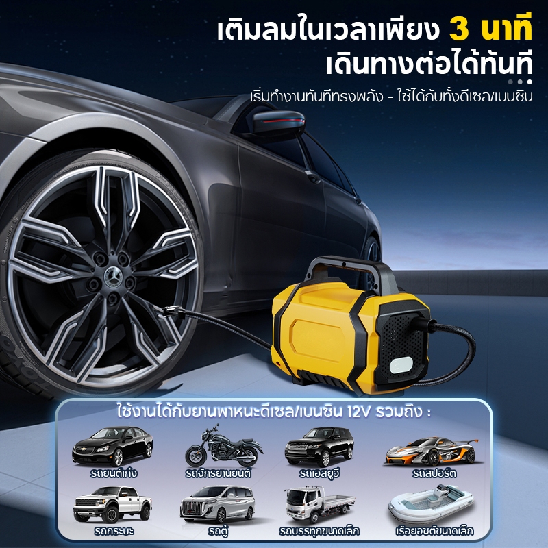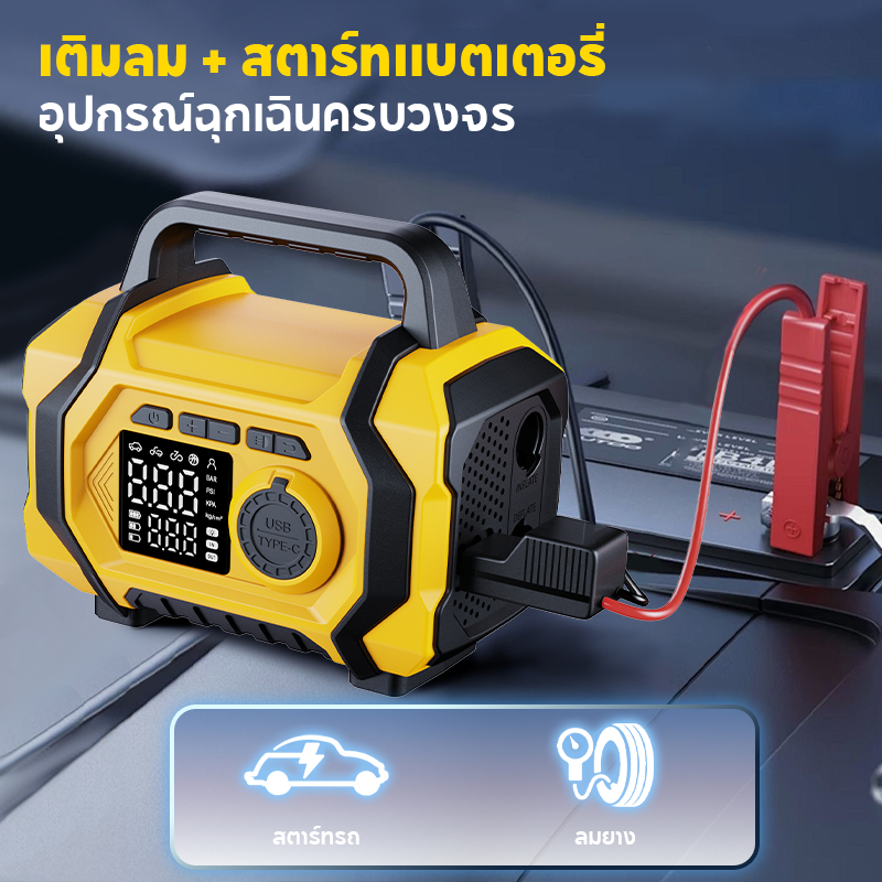 Celoglo ปีปั้มลมแบบพกพา เครื่องชาร์จแบตเตอรี่รถยนต์ ชาร์จไฟได้ จอLED 80W/12V รถพลังงานฉุกเฉินเริ่มต้นปั๊มลม ปั๊มลมไฟฟ้า