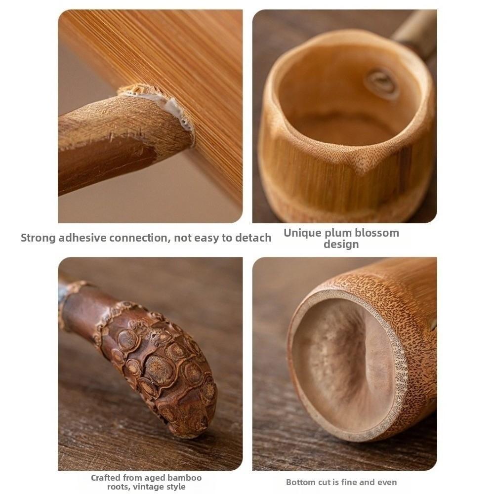 WISATHY ใส่ชา,ย้อนยุคไม้ไผ่วัสดุทัพพีน้ํา,แบบพกพาที่ทําด้วยมือด้ามยาวอุปกรณ์พิธีชงชาบ้านครัว