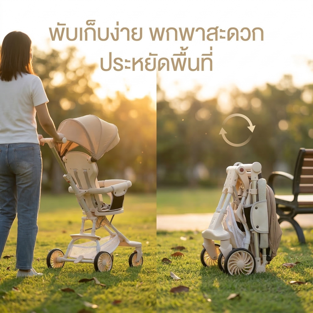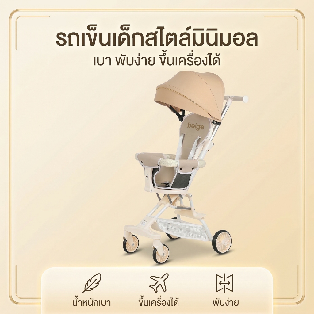Beige รถเข็นเด็ก พับได้ สะดวกต่อการพกพา สามารถนําขึ้นเครื่องบินได้ เหมาะสําหรับเด็กอายุ 0-4 ปี