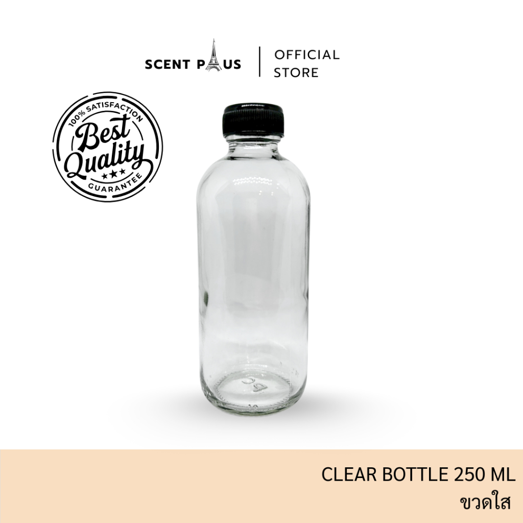 ขวดแก้วสีใส-สีชา ขนาด 120 , 250 มิล พร้อมฝานอกและจุกปิด ขวดน้ำหอม ขวดใส่น้ำหอม