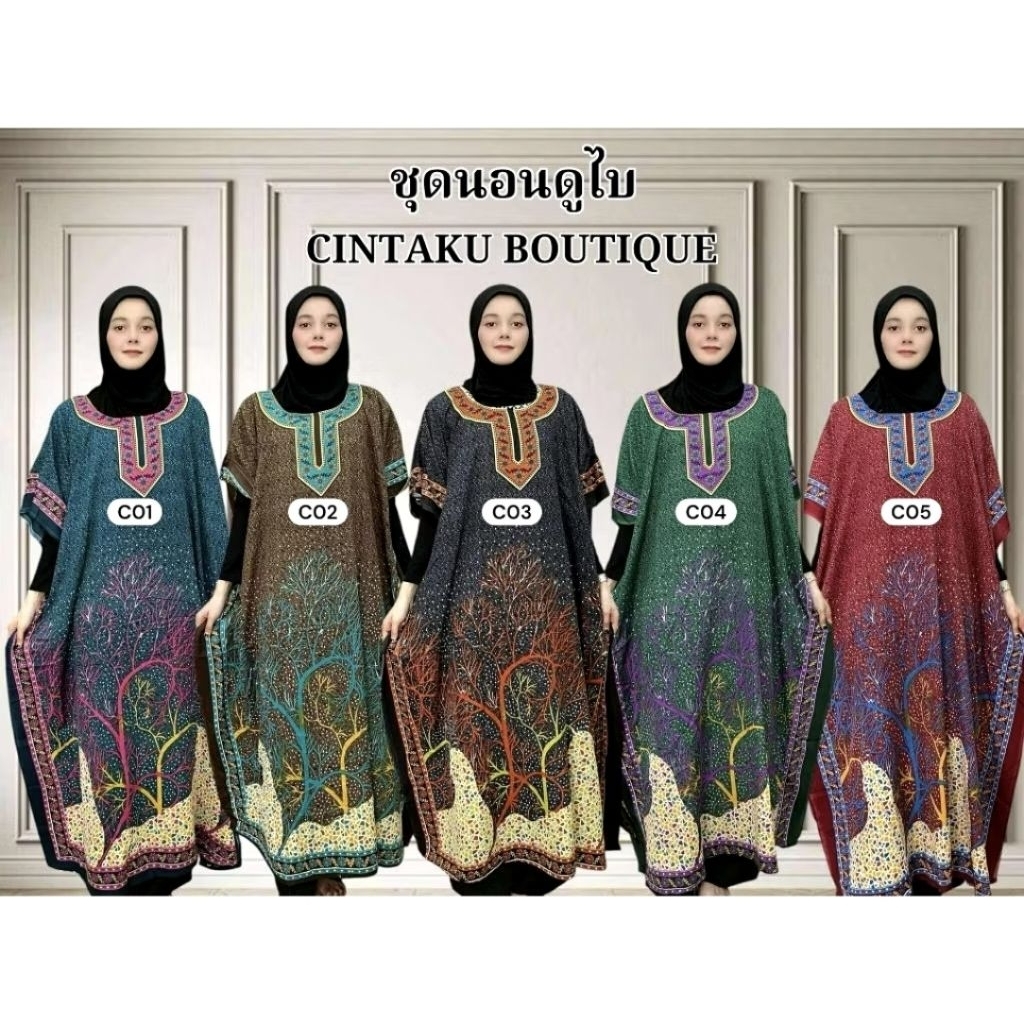 ชุดนอนดูไบ เดรสยาวโบฮีเมียน ปีกค้างคาว ส่งสุ่มคละลาย