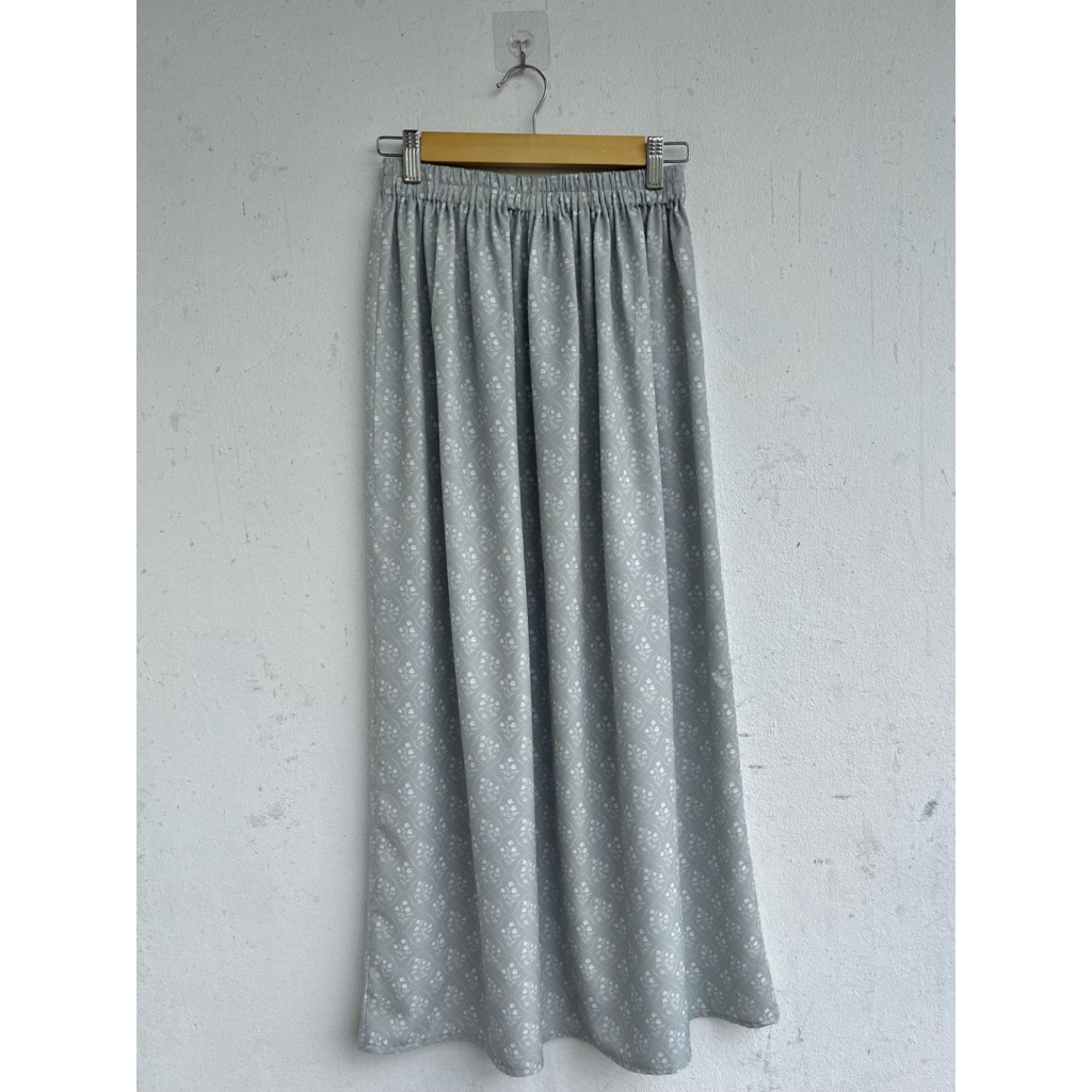กระโปรงยาวลายดอกไม้ มินิมอล สไตล์เกาหลี เอวยางยืด ผ้าไหมอิตาลี