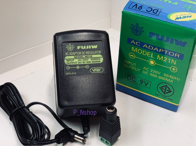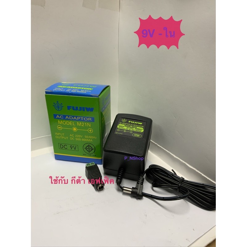Fujiw อแดปเตอร์ Adaptor 9V-ใน +นอก 500-800MA(M21Nเขียว)มีregulatedใช้กับกีต้าเอฟแฟค