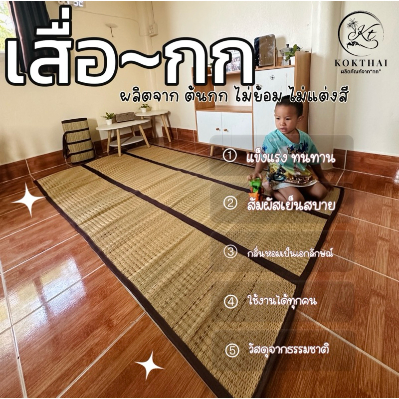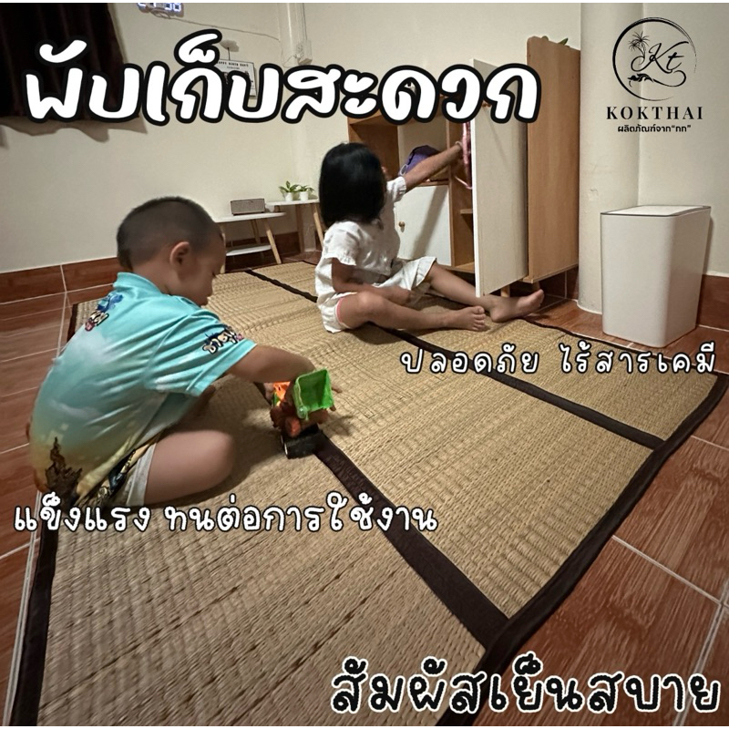 เสื่อพับ 8 ฟุต (เสื่อกกแท้100%)ขนาดใหญ่จุใจ 240*190 ซม. เนื้อเสื่อกกเย็น หอม สีธรรมชาติ(เสื่อลำ240)