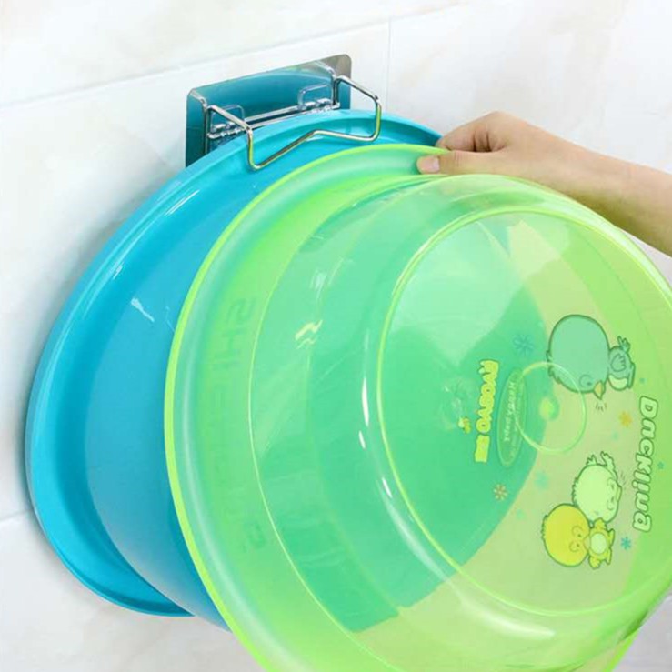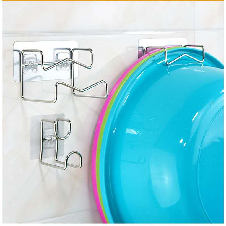 [ ไม่ต้องเจาะผนัง ] ที่แขวนอเนกประสงค์ ที่แขวนกะละมัง ที่แขวนในห้องน้ำ ทำจากสแตนเลส รับน้ำหนักได้มาก