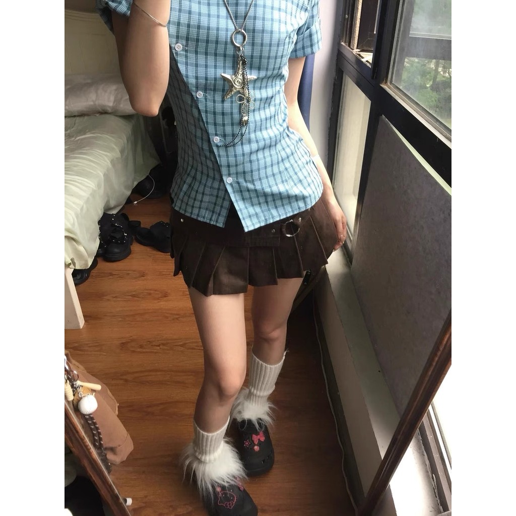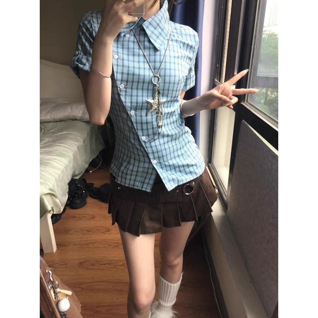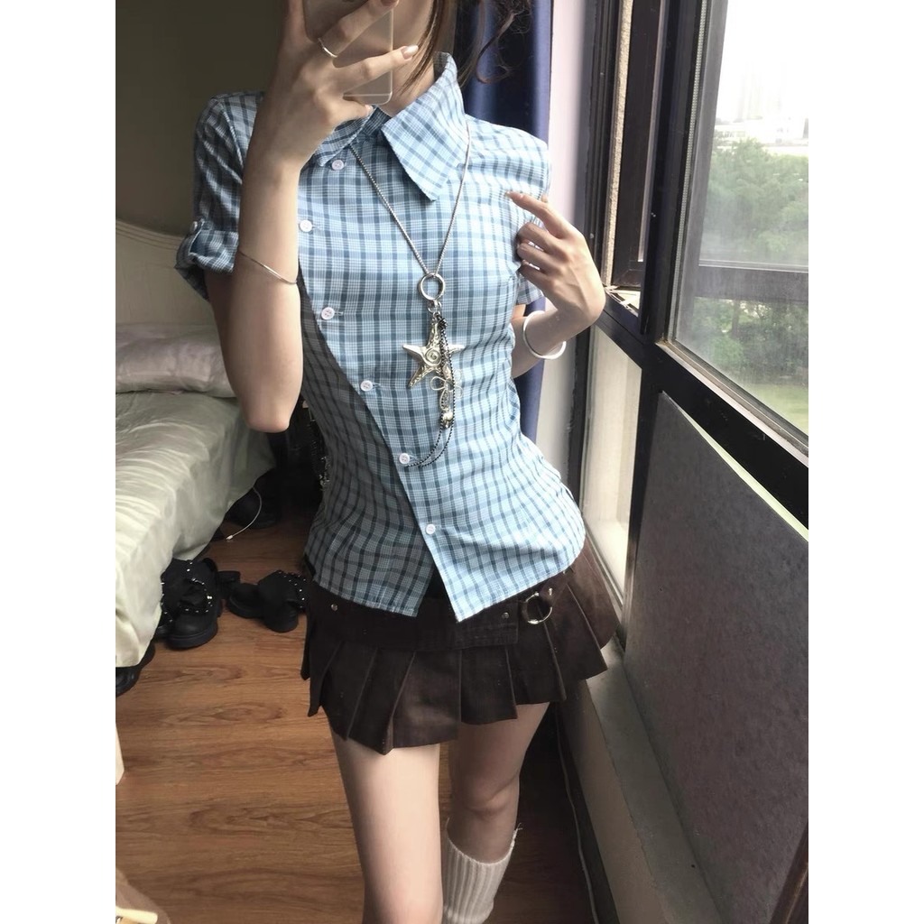 เสื้อเชิ้ตแขนสั้นลายสก๊อตสำหรับผู้หญิง แบบอ่อนโยนและสบายในฤดูใบไม้ผลิ 260128