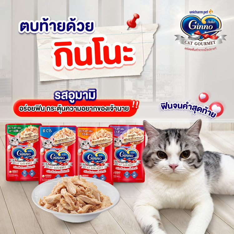 [ยกลัง 48 ซอง] Ginno กินโนะ อาหารเปียกแมว แมวโต มาตราฐาน ญี่ปุ่น อูมามิ ทานง่าย ไม่เติมเกลือ ไม่เค็ม เกรวี่ เยลลี