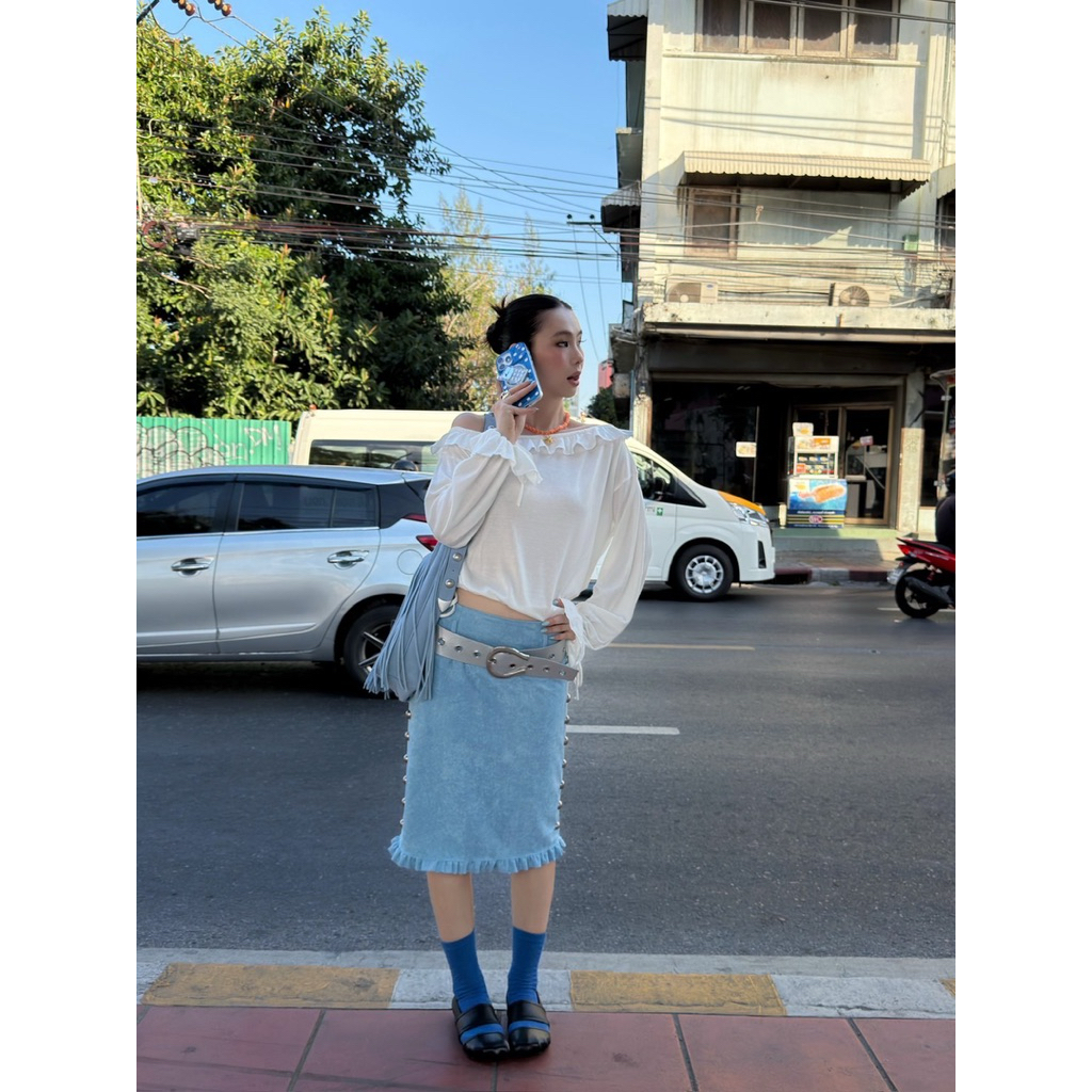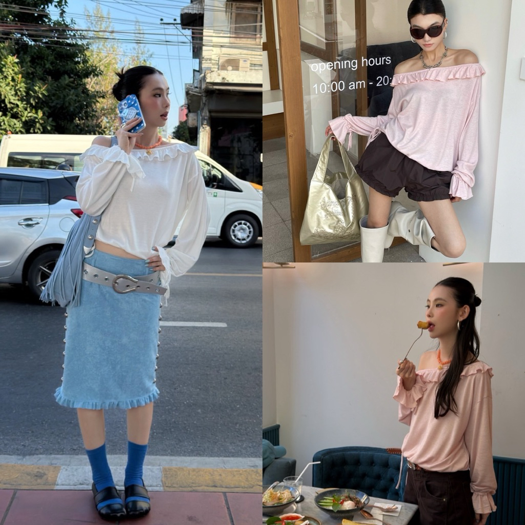 ส่งด่วน 🌸 #26T077 MMFISH เสื้อแขนยาวเปิดไหล่ ดีไซน์แต่งระบาย เพิ่มความเก๋