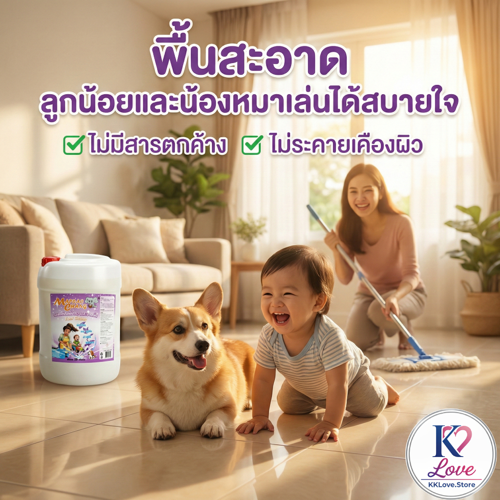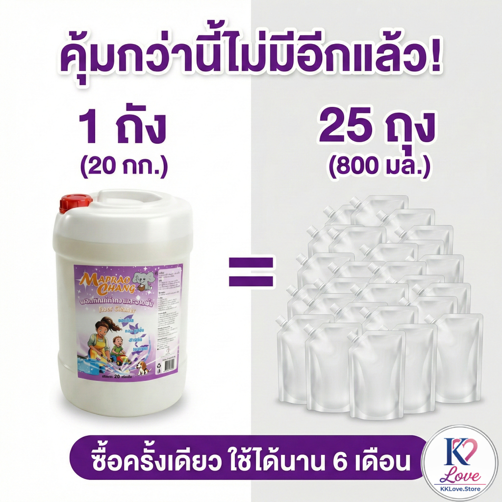 น้ำยาถูพื้น Maprao Chang ขนาด 20 กก (20,000 มล) ดับกลิ่นคาว/กลิ่นฉี่สุนัขแมว พื้นเงา แห้งเร็ว ไม่ทิ้