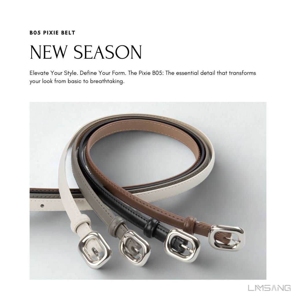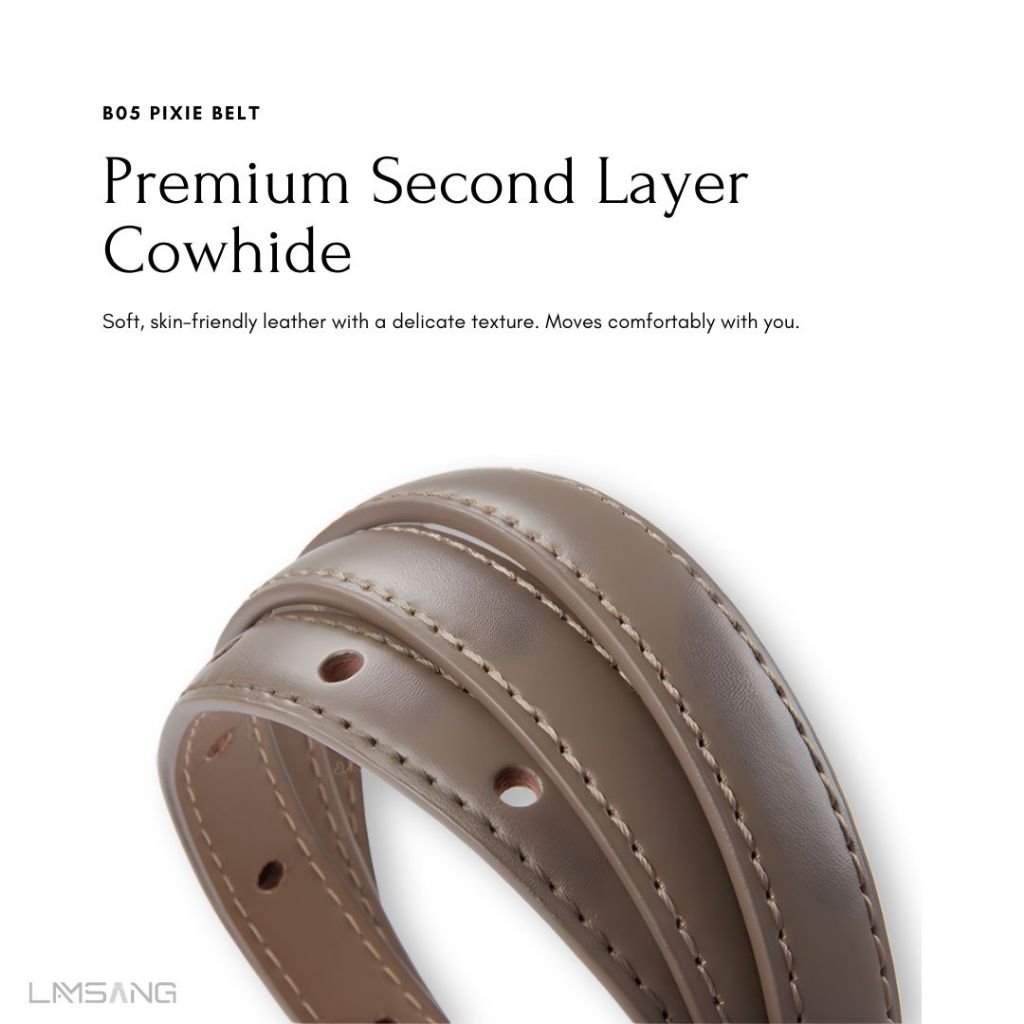 (🇹🇭 พร้อมส่ง) LAMSANG B05 Pixie Belt เข็มขัดหนังแท้ หัวเข็มขัดโลหะผสม 1.4 cm ยาว 105 cm