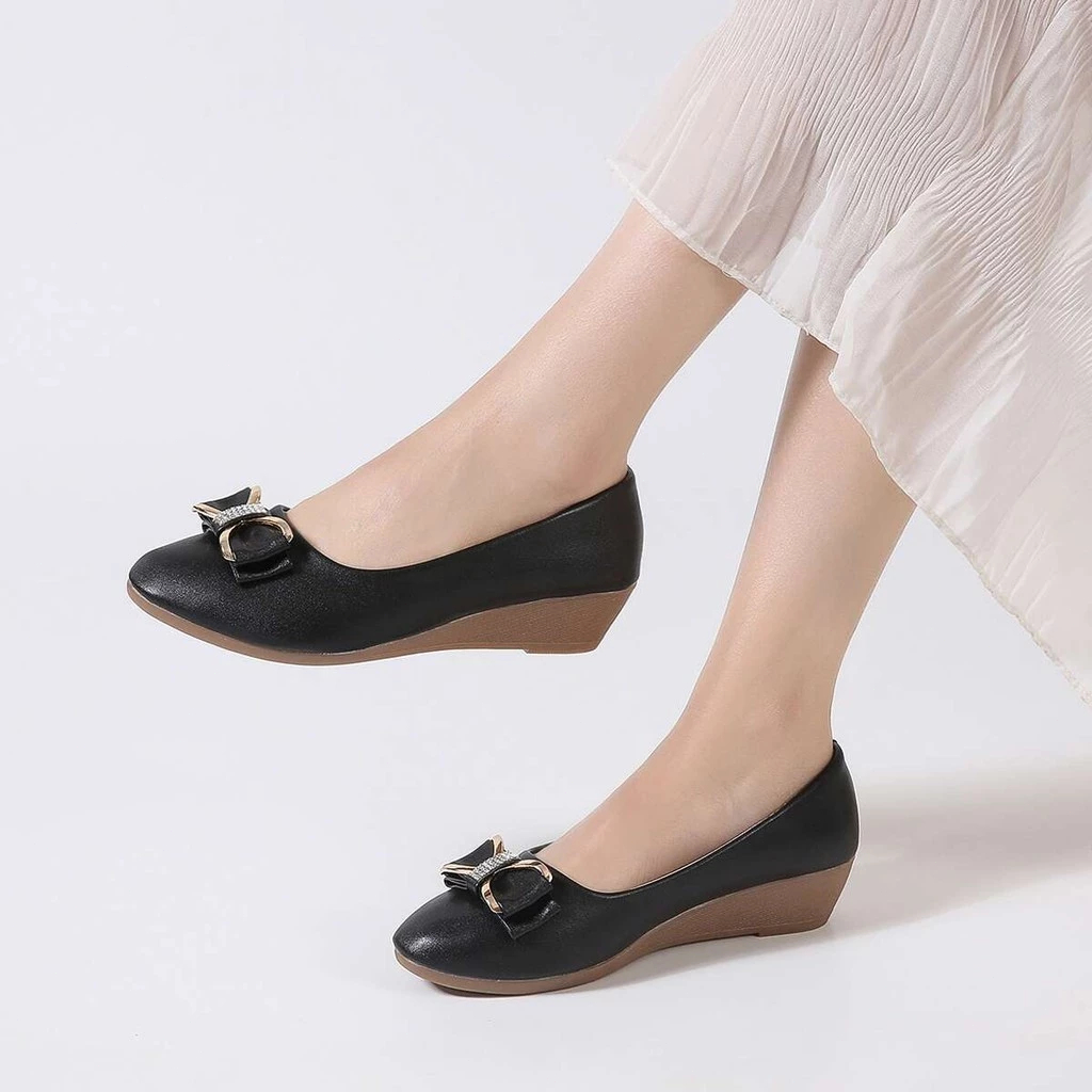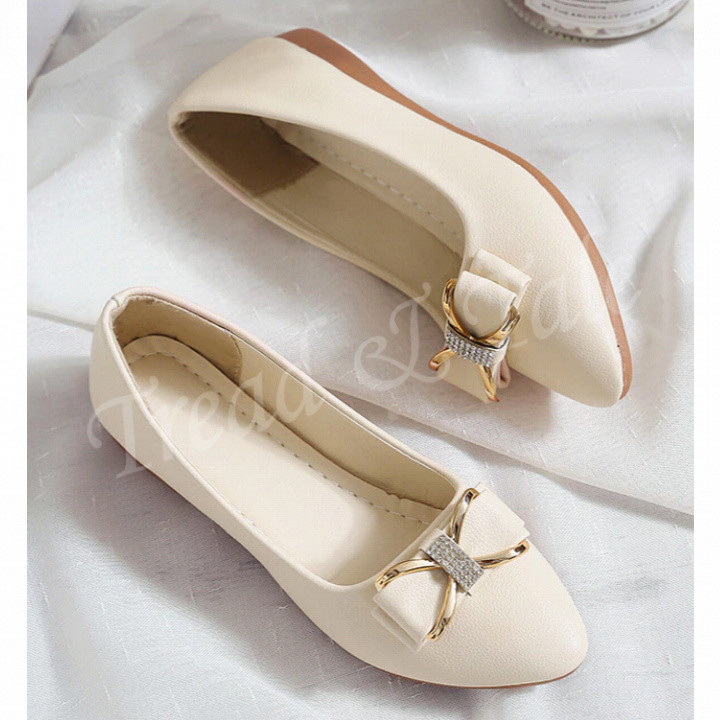 (พร้อมส่งจากไทย)รองเท้าส้นเตี้ย หัวแหลม ประดับโบว์ พลอยเทียม เหมาะกับใส่ทํางาน แฟชั่นสําหรับผู้หญิง ขนาด35-41