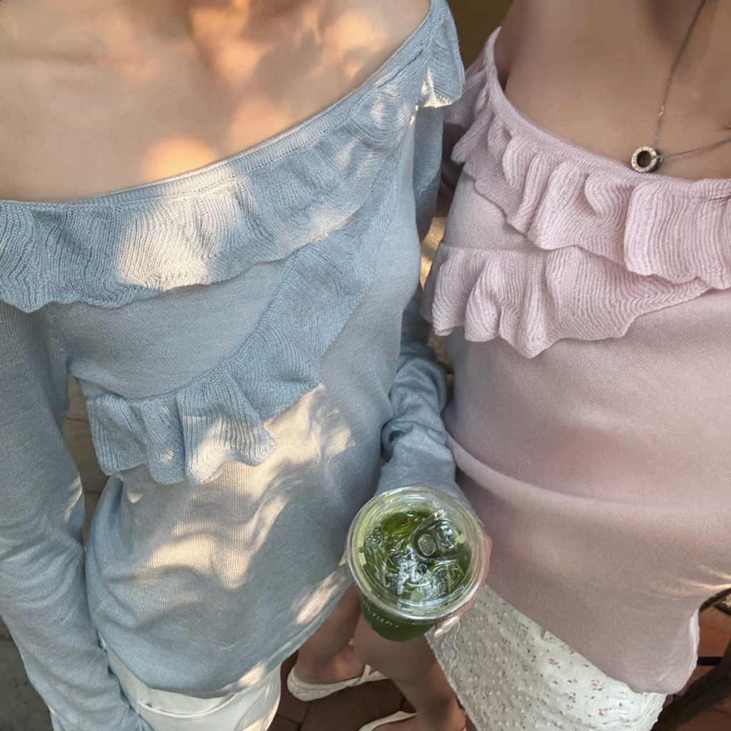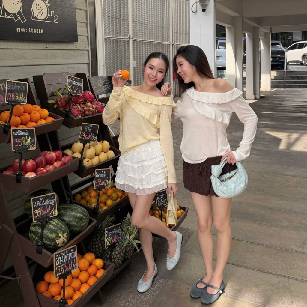 3pcs.basket Jammy top เสื้อแขนยาวระบายไหล่