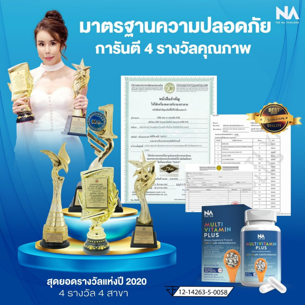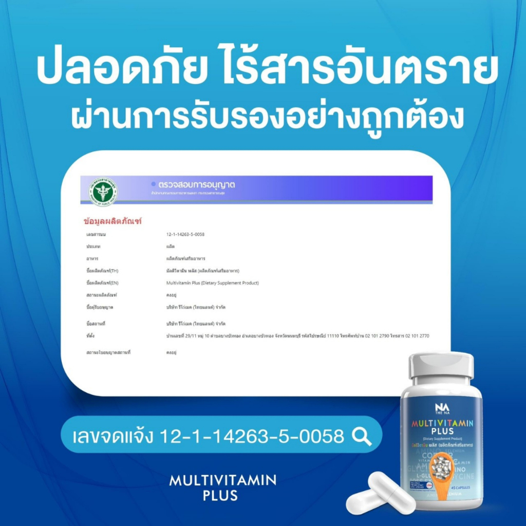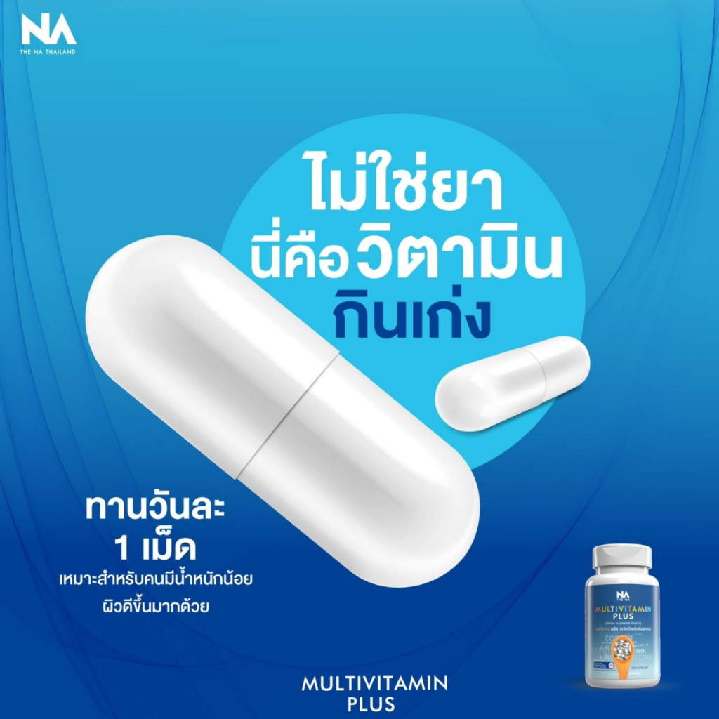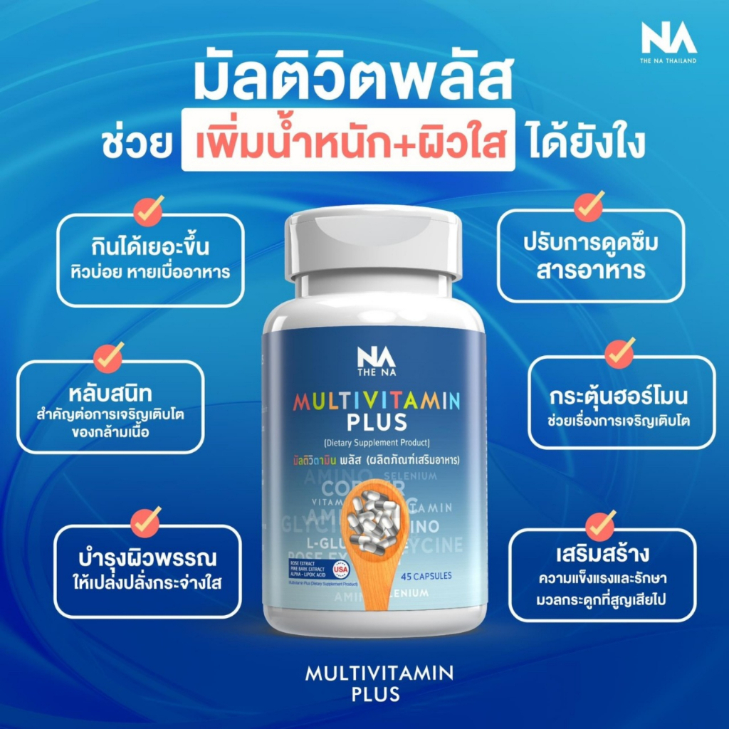 THE NA Multivitamin Plus วิตามินเพิ่มน้ำหนัก ช่วยเจริญอาหาร ลดอ่อนเพลีย บำรุงผิว กระตุ้นพลังงาน 45 แคปซูล