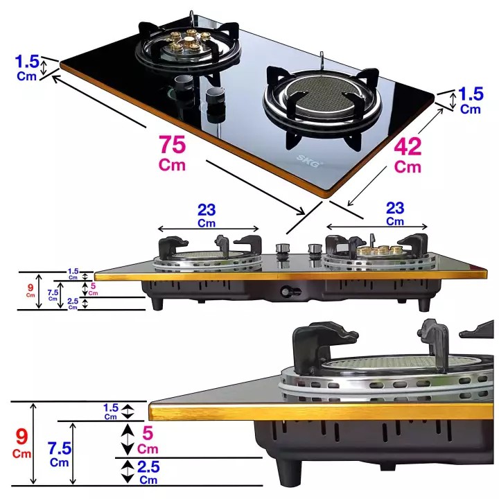 SKG เตาแก๊ส 2หัว รุ่น SK-803 แบบฝังหรือวางพื้นโต๊ะ เตาแก๊สหัวฟู่ 1หัว เตาแก๊สอินฟาเรด รับประกัน1 ปี