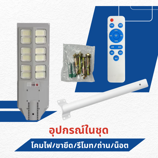 (J200) ไฟโซล่าเซลล์ ไฟถนน 200W แสงสีขาว โซล่าเซลล์ Solar Light ไฟเซ็นเซอร์ตรวจจับคน ไฟถนน ไฟอัจฉริยะ กันน้ำ กันฟ้าผ่า