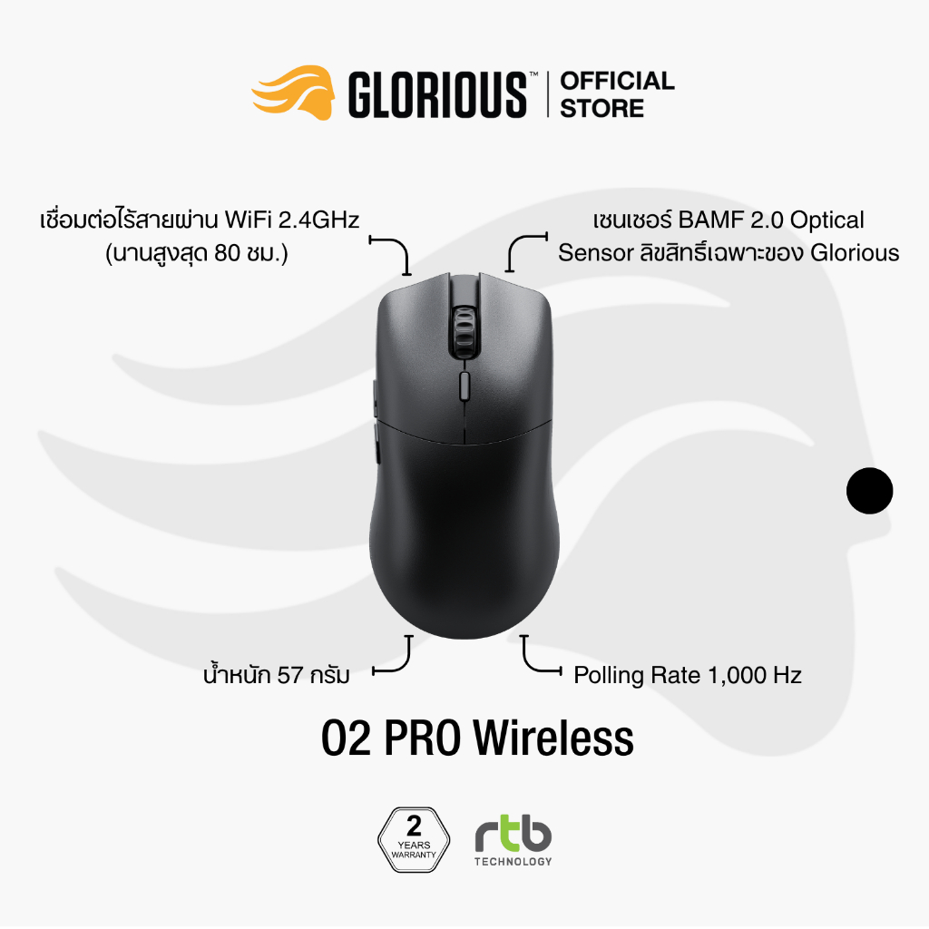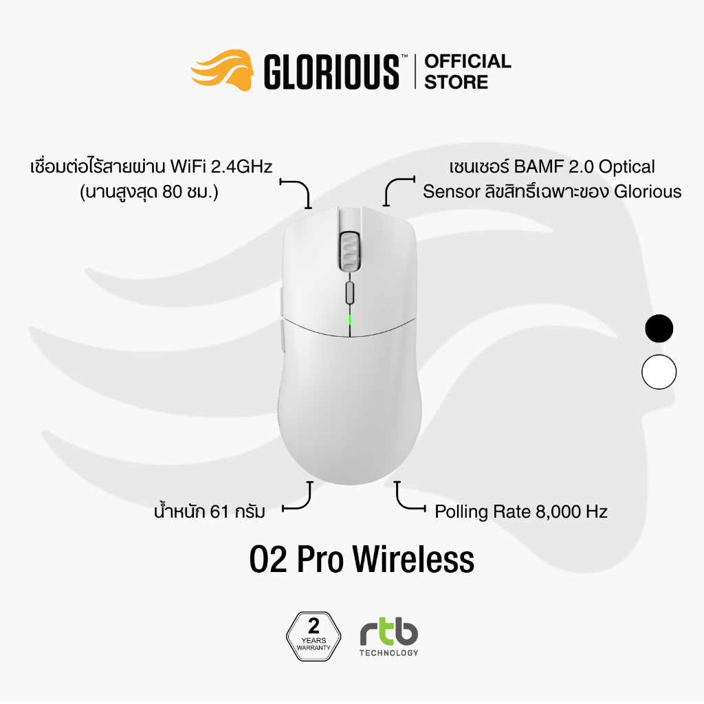 Glorious Model O 2 Pro Series เมาส์เกมมิ่ง ไร้สาย Wireless Gaming Mouse น้ำหนักเบา 1K/4K-8K Edition
