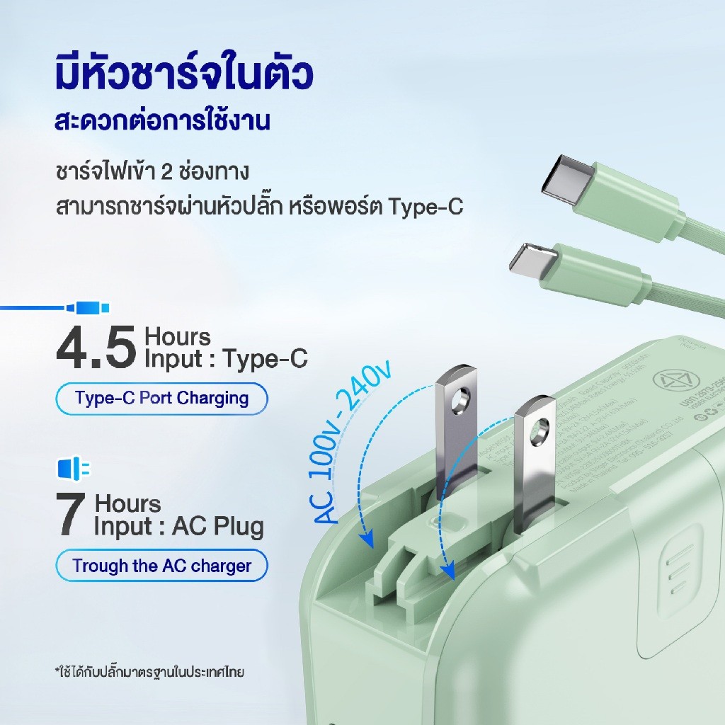 ACNIC ccc [รับประกัน 2 ปี] W1501 Powerbank 20000mAh พาวเวอร์แบงค์ชาร์จเร็ว Fast Charge PD20W มีสายในตัว หน้าจอ LED