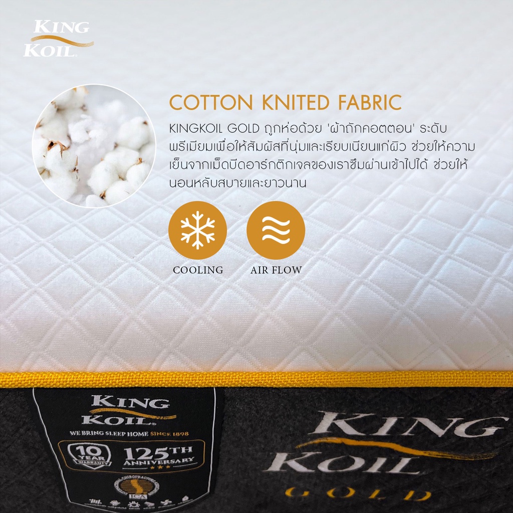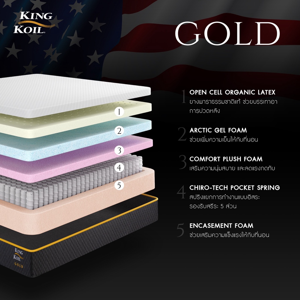 KingKoil รุ่น Gold ที่นอนไอโซคอยด์พ็อกเก็ตสปริง เสริมยางพาราธรรมชาติ นวัตกรรมจาก Nasa Arctic Cool Gel สัมผัสนุ่มเย็นสบาย
