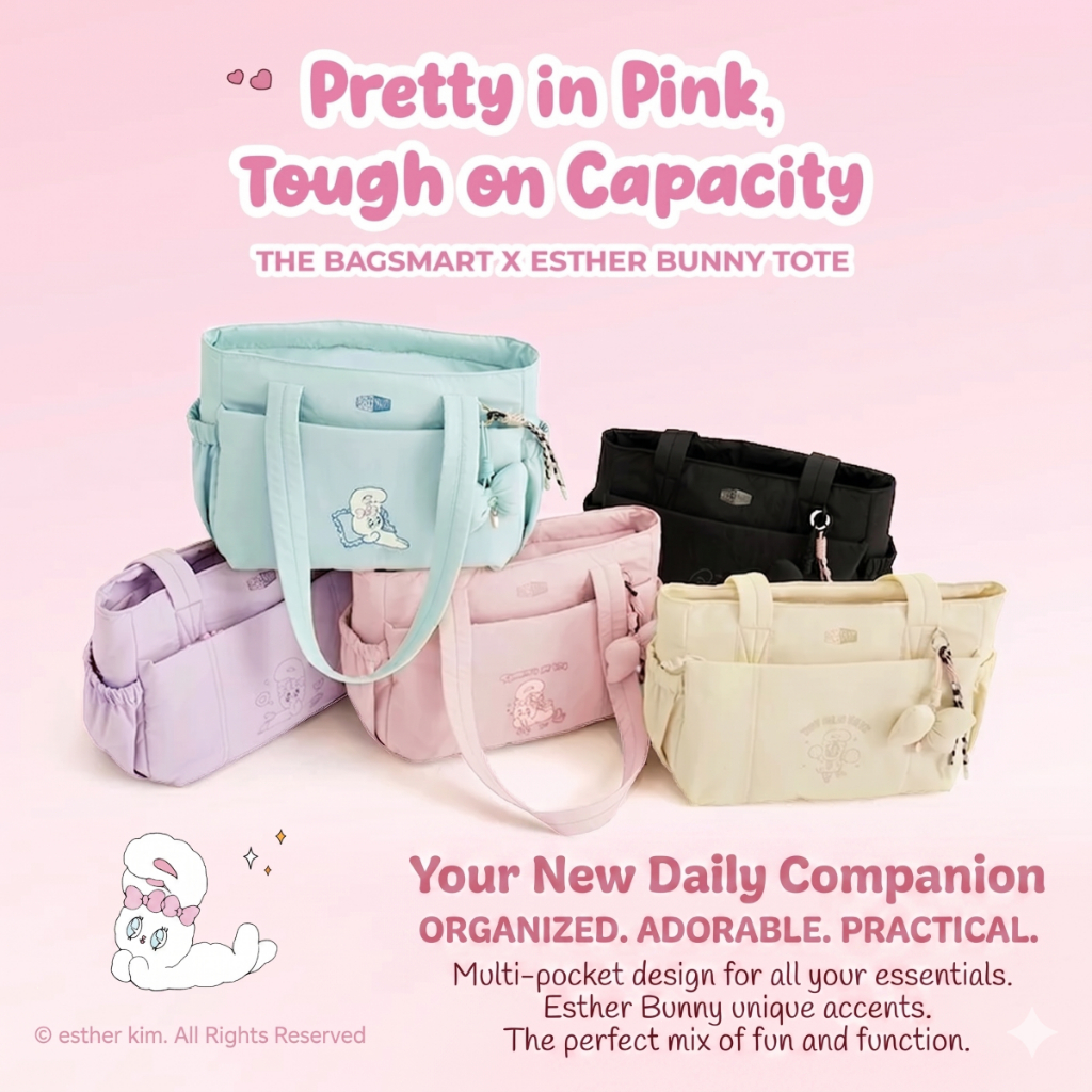BAGSMART ESTHER BUNNY Fashion Tote Bag กระเป๋าสะพายขา้ง Women Baguette Bag Handbag for 13.1" Laptop