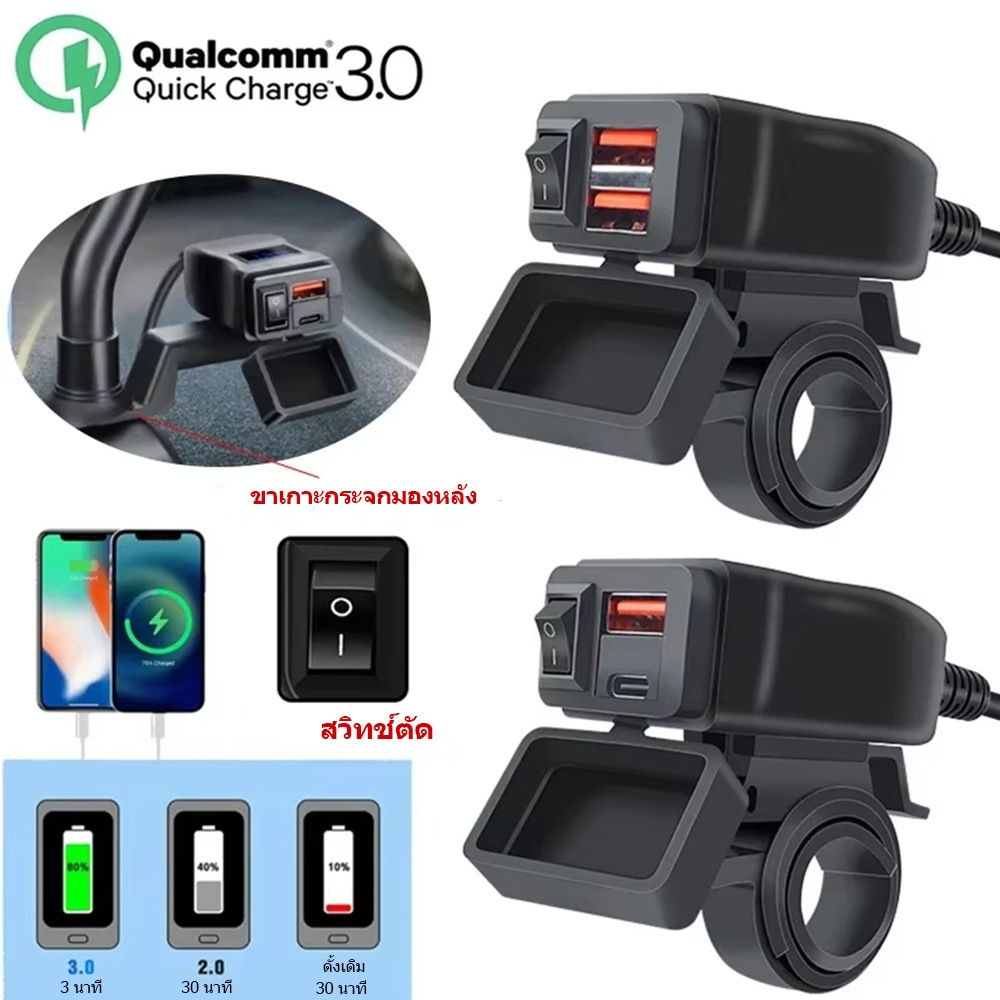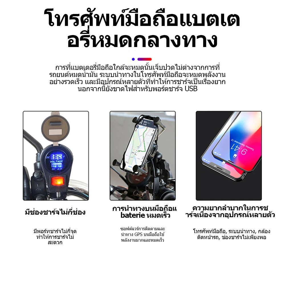 ที่ชาร์จมอเตอร์ไซค์ USB PD QC พร้อมโวลต์มิเตอร์ดิจิตอล กันน้ำ ชาร์จเร็วสุด ใช้ได้ทุกรุ่น X AUTO