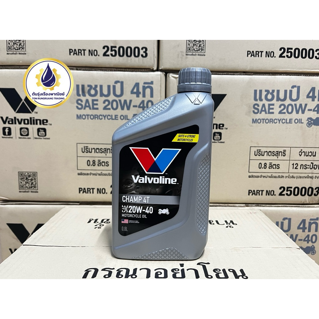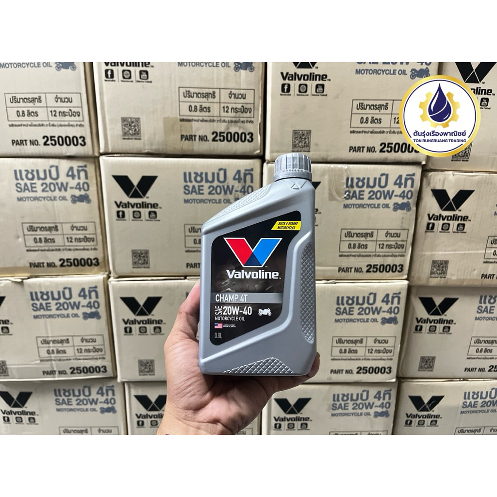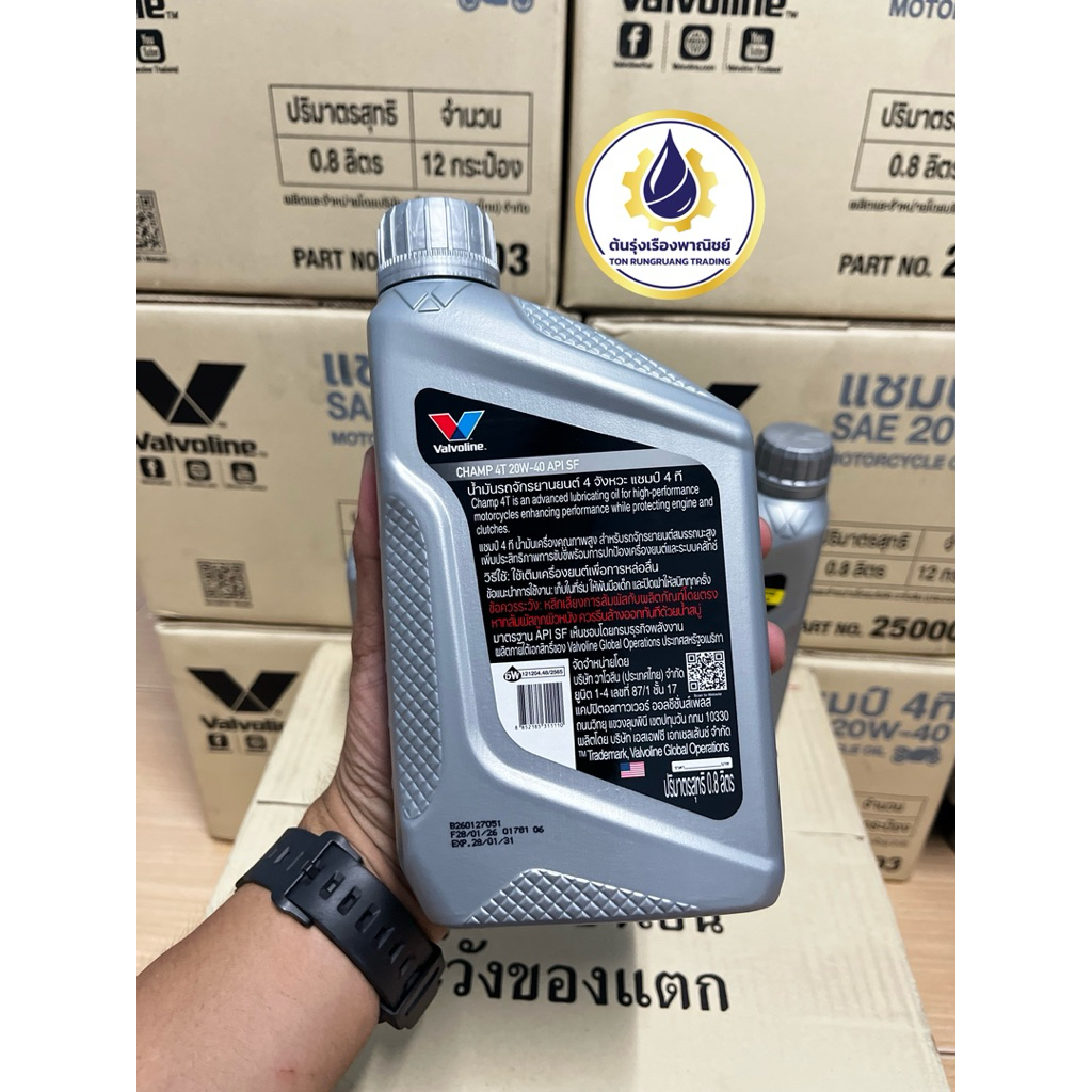 Valvoline Champ 4T SAE 20W-40 ขนาด 0.8 ลิตร น้ำมันเครื่อง สำหรับรถจักรยานยนต์ 4 จังหวะ ทุกรุ่น ขวดสีเทา มีกลิ่นหอม