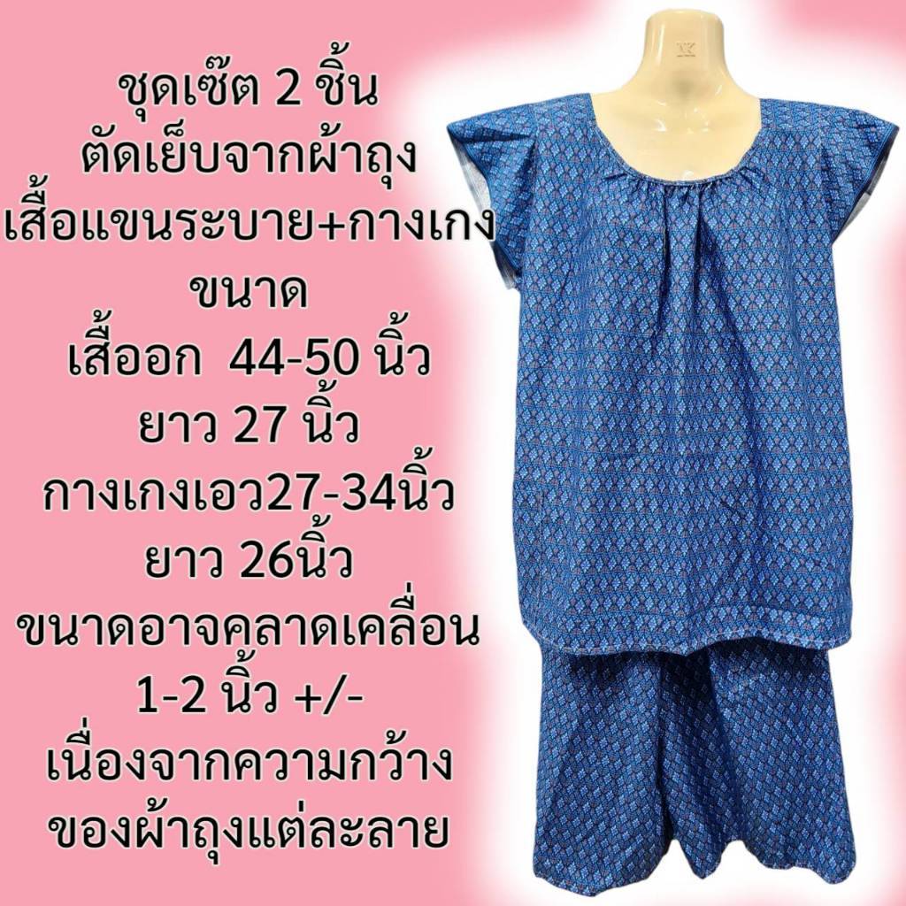 ชุดนอนคนแก่ผู้หญิง ตัดเย็บจากเนื้อผ้าถุงเนื้อโทเรนิ่มลายไทย