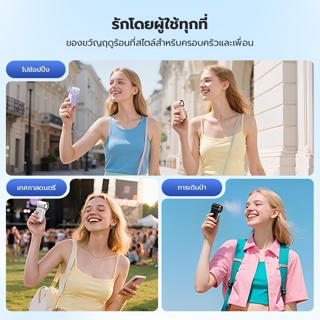 【2026ใหม่ล่าสุด】พัดลมพกพา 5000mAh ใช้งานยาว20ชั่วโมง ลมแรงสุด เสียงเงียบ พัดลมมือถือ แบตอึด พกพาสะดวก สีสวย