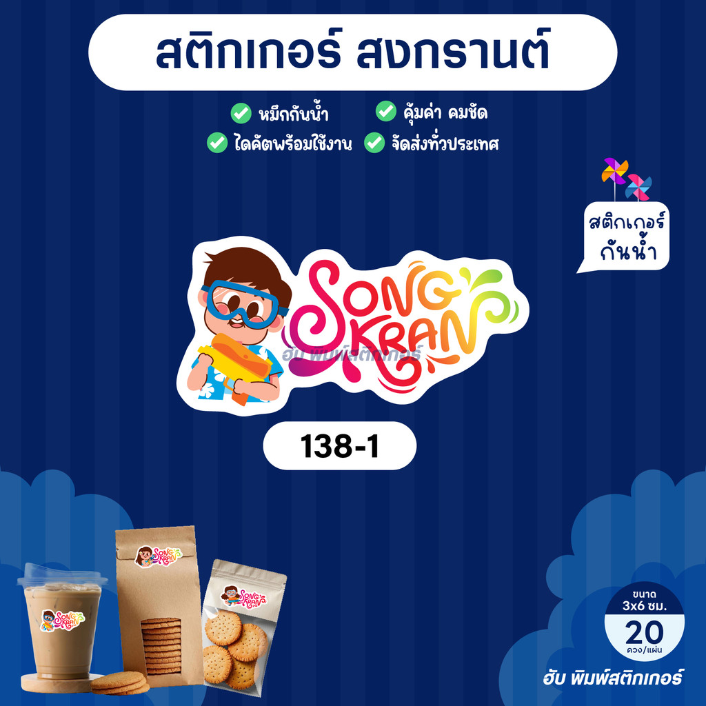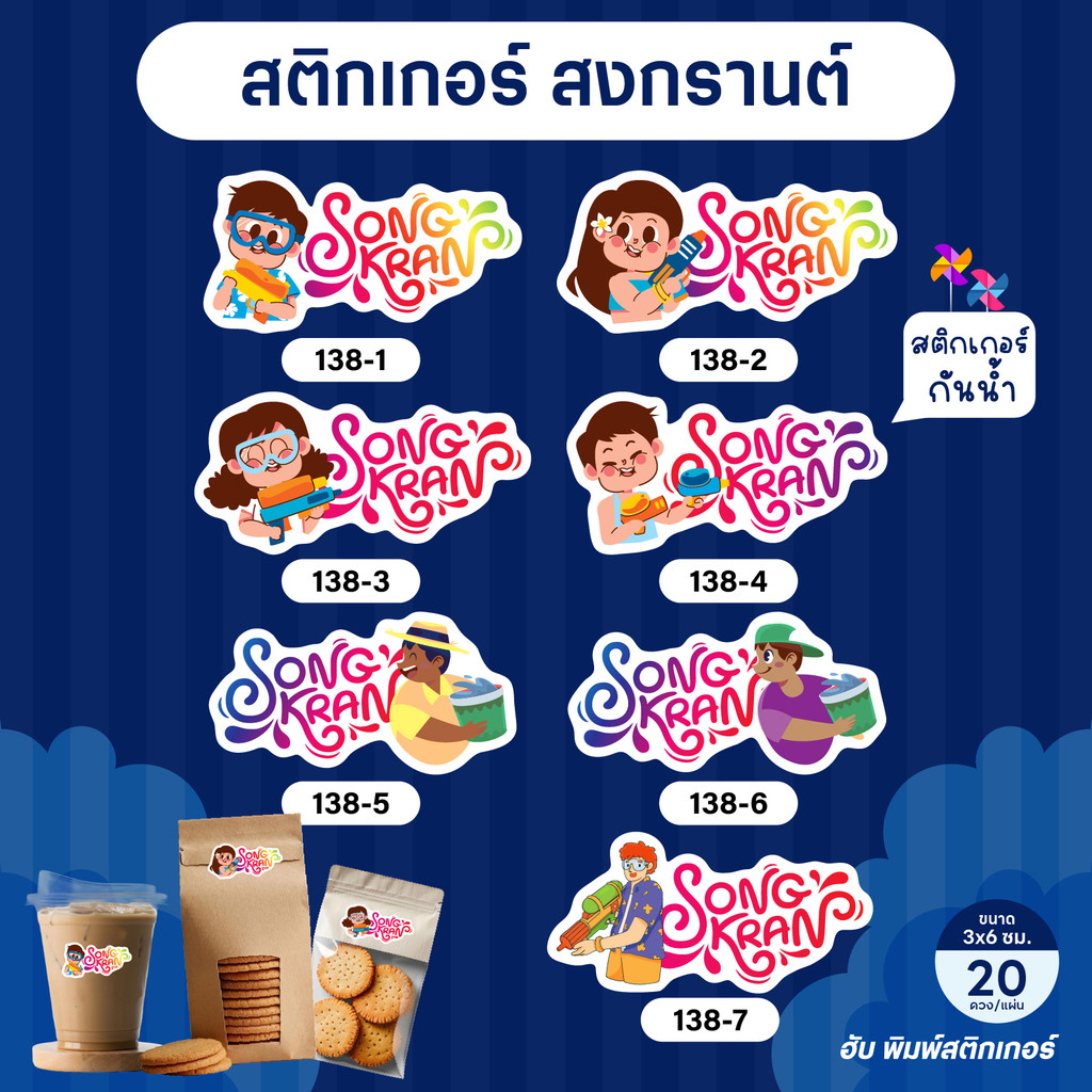 ฮับพิมพ์ สติ๊กเกอร์ Sticker - PPกันน้ำ - สงกรานต์ Songkran -138