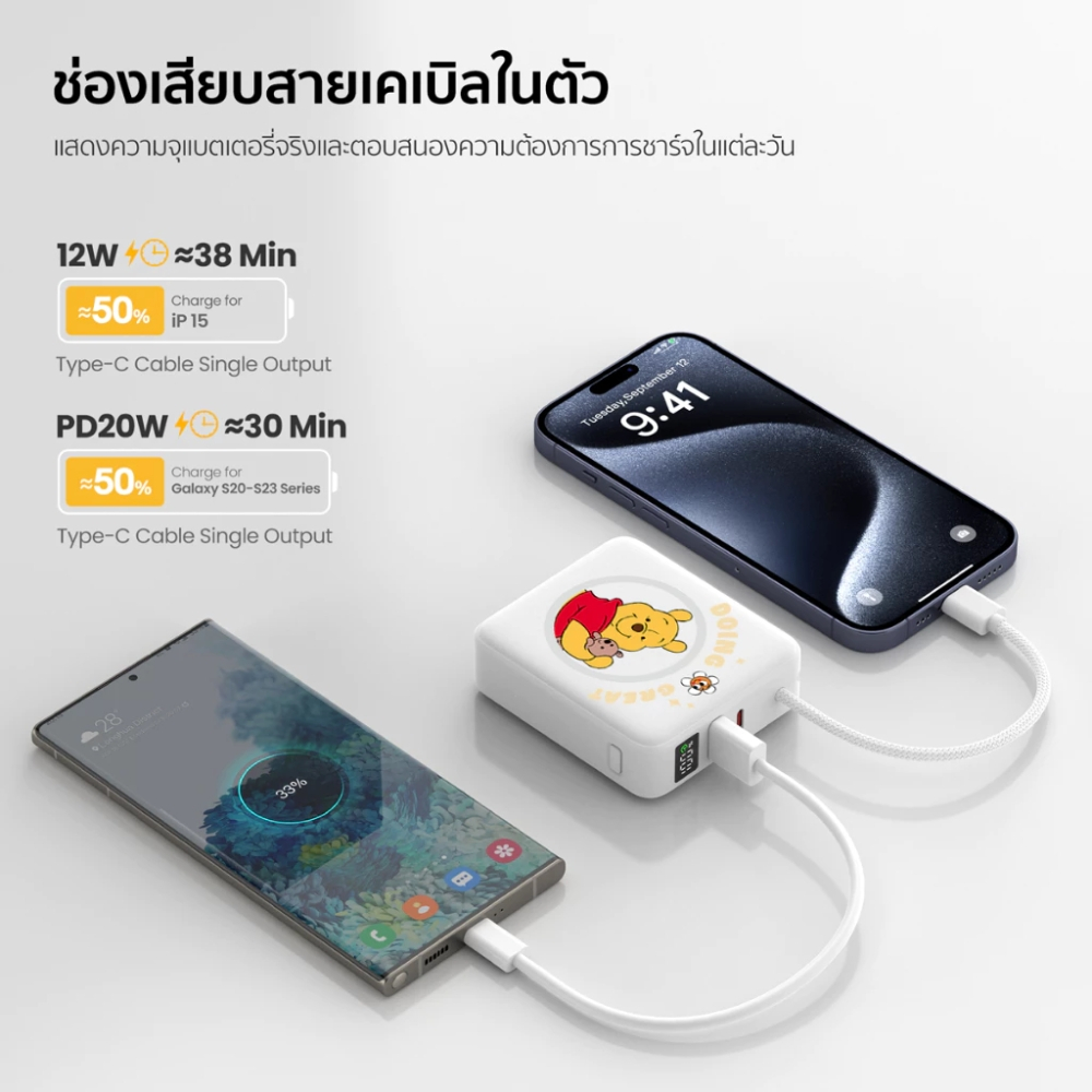 (แถมพวงกุญแจ) Veger รุ่น VP10-07WPD PRO PowerBank Disney10000mAh ชาร์จเร็วPD20W QC3.0 15W สาย Type-C