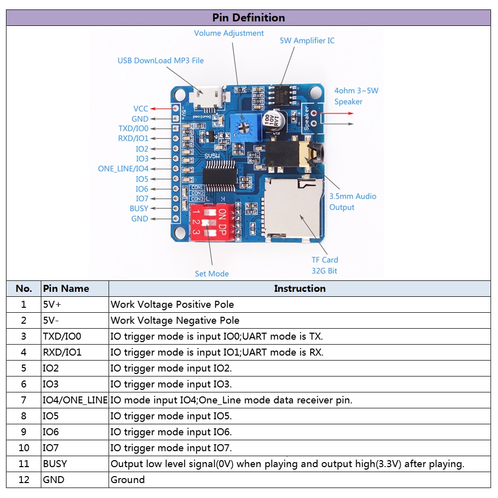 Dy - Sv5W บอร์ดโมดูลเครื่องเล่น Mp3 5 W Mp3 Playback Serial Control Sd / Tf Card DY-SV5W Voice Playback Module Board