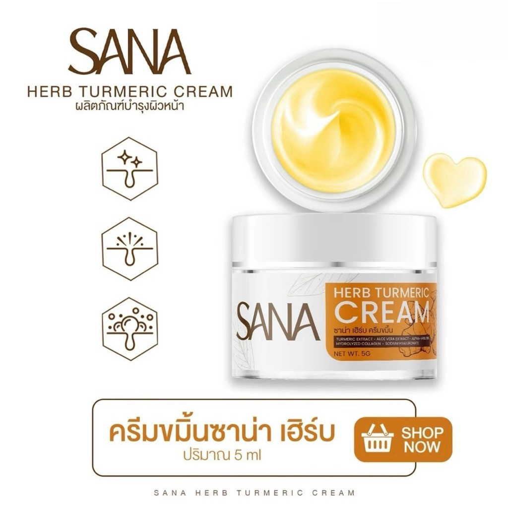 { ของแท้100% } SANA ครีมขมิ้นซาน่าเฮิร์บ บำรุงผิวหน้า สกินแคร์ กลิ่นหอม ใช้ง่าย 1 กระปุก 5 กรัม