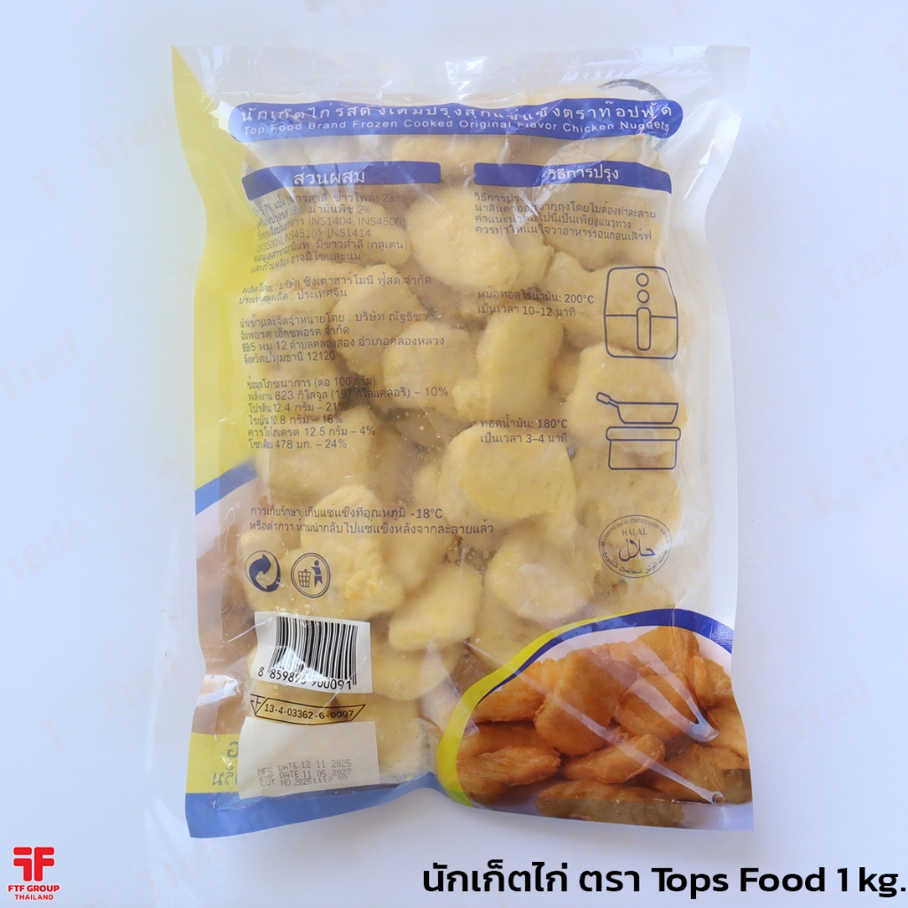 นักเก็ตไก่ ตรา Tops Food 1 กิโลกรัม นักเก็ตแช่แข็ง มีฮาลาล [ค่าส่งเหมา! ส่งรถเย็น ซื้อได้ทั้งร้าน]